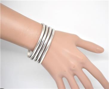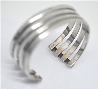 .TYPE: Women's Hallmarked Mexican Modernist 4 Wire / band Sterling Silver 925 Cuff Bracelet