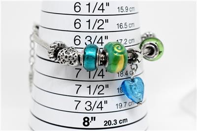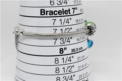 SIZE APPROX: bracelet approx. 7 3/4" to 8 1/4" long open end to end x approx. 0.11" / 3mm wide at links. Largest charm approx. just over 1" length.