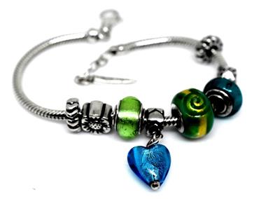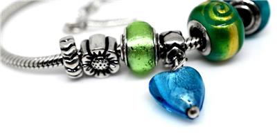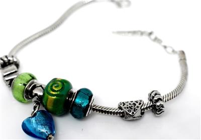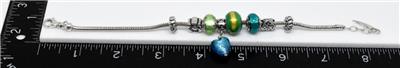 TYPE: Designer BACIO Italy Serpentine Link Foil Glass Sterling Silver 8 Charm Bracelet