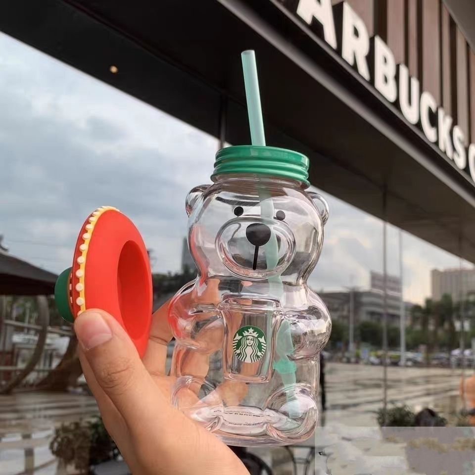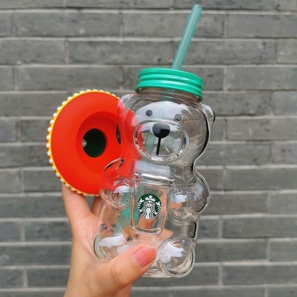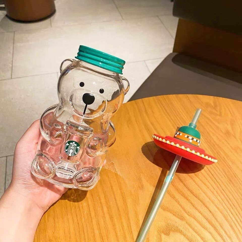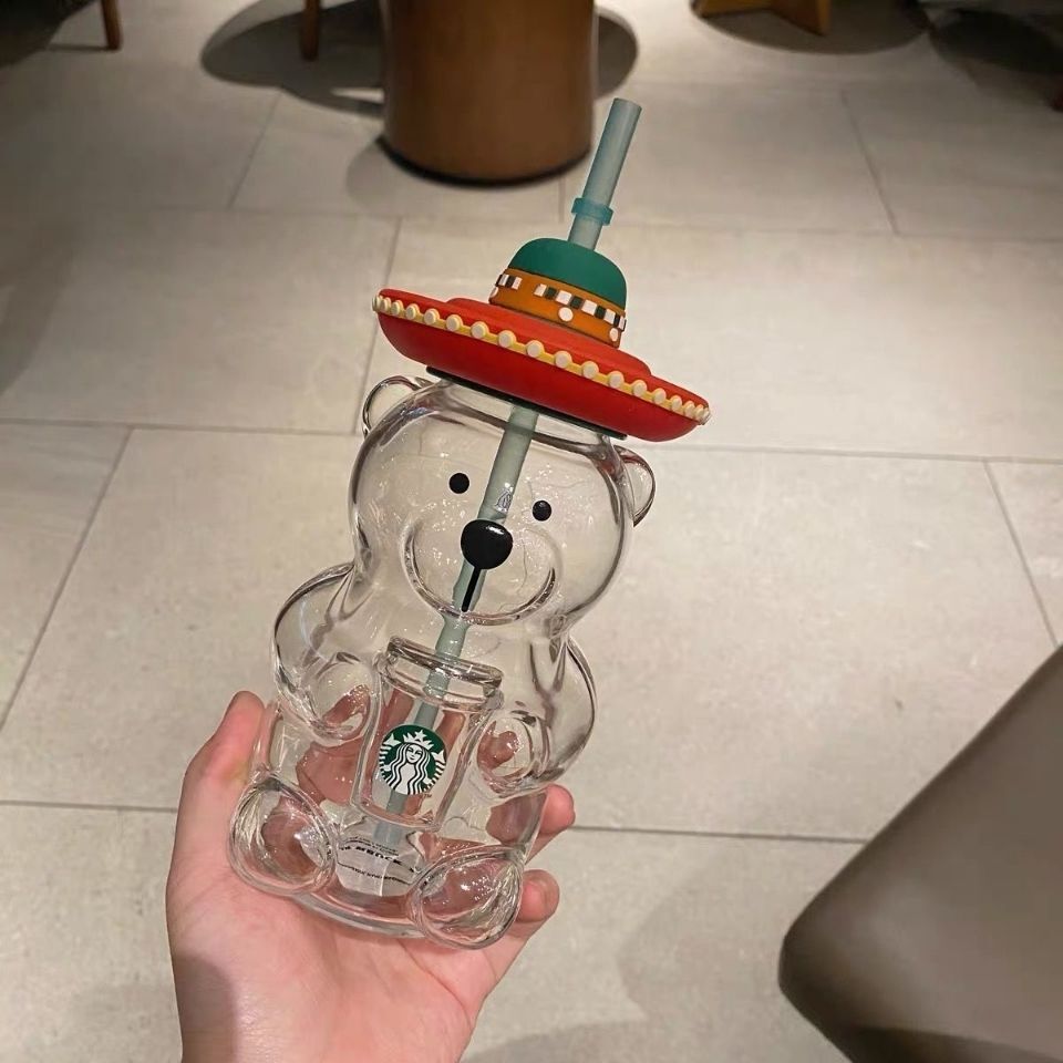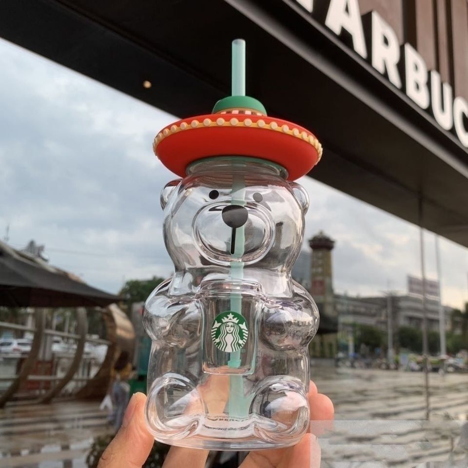 Starbucks China New Cute Lami Bear Glass Milk Coffee Cup With Straws 503ML 2023