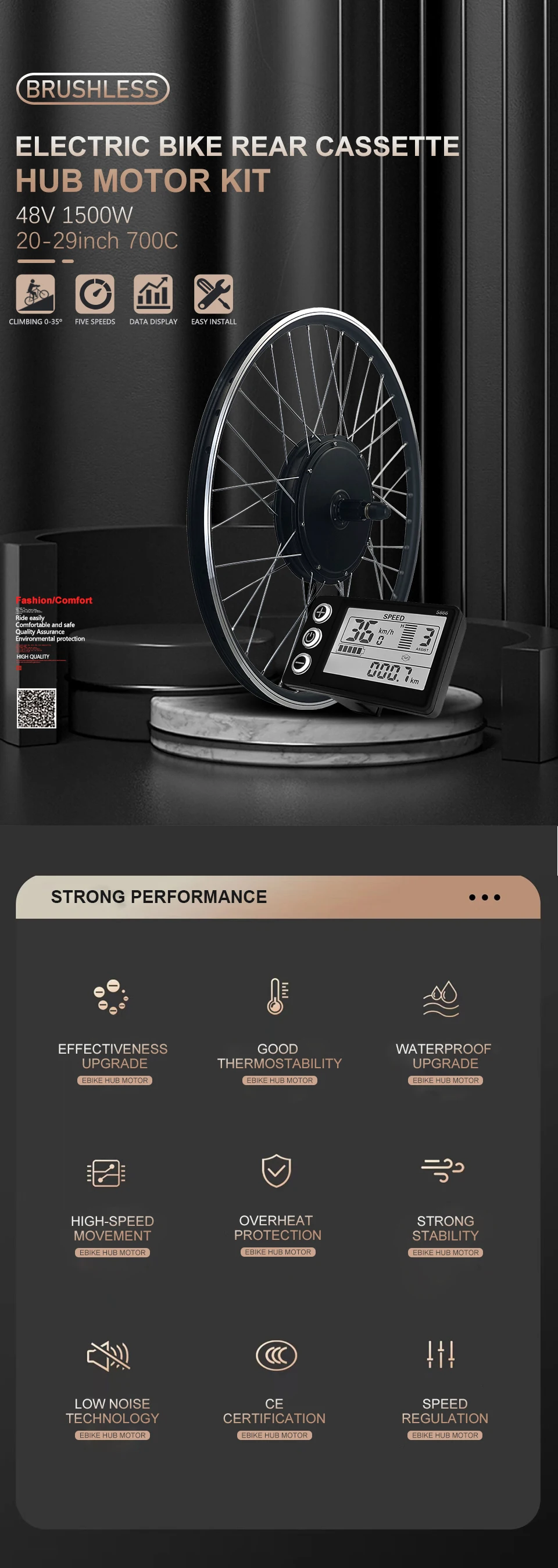 1 PCS * Rear Hub Motor with Rim and Spokes