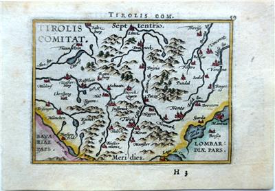 ABRAHAM ORTELIUS (1527-1598) WAS A CARTOGRAPHER, GEOGRAPHER AND COSMOGRAPHER ACTIVE IN ANTWERP. HE WAS THE CREATOR OF THE FIRST MODERN ATLAS "THEATRUM ORBIS TERRARUM" THIS MAP IS FROM THE POCKET VERSION OF THE ATLAS AND THE 2nd EDITION IN FRENCH WITH THE MAPS ENGRAVED BY PHILIPPE GALLE (1537-1612) PUBLISHED BY CHRISTOFLE PLANTIN, ANTWERP 1590