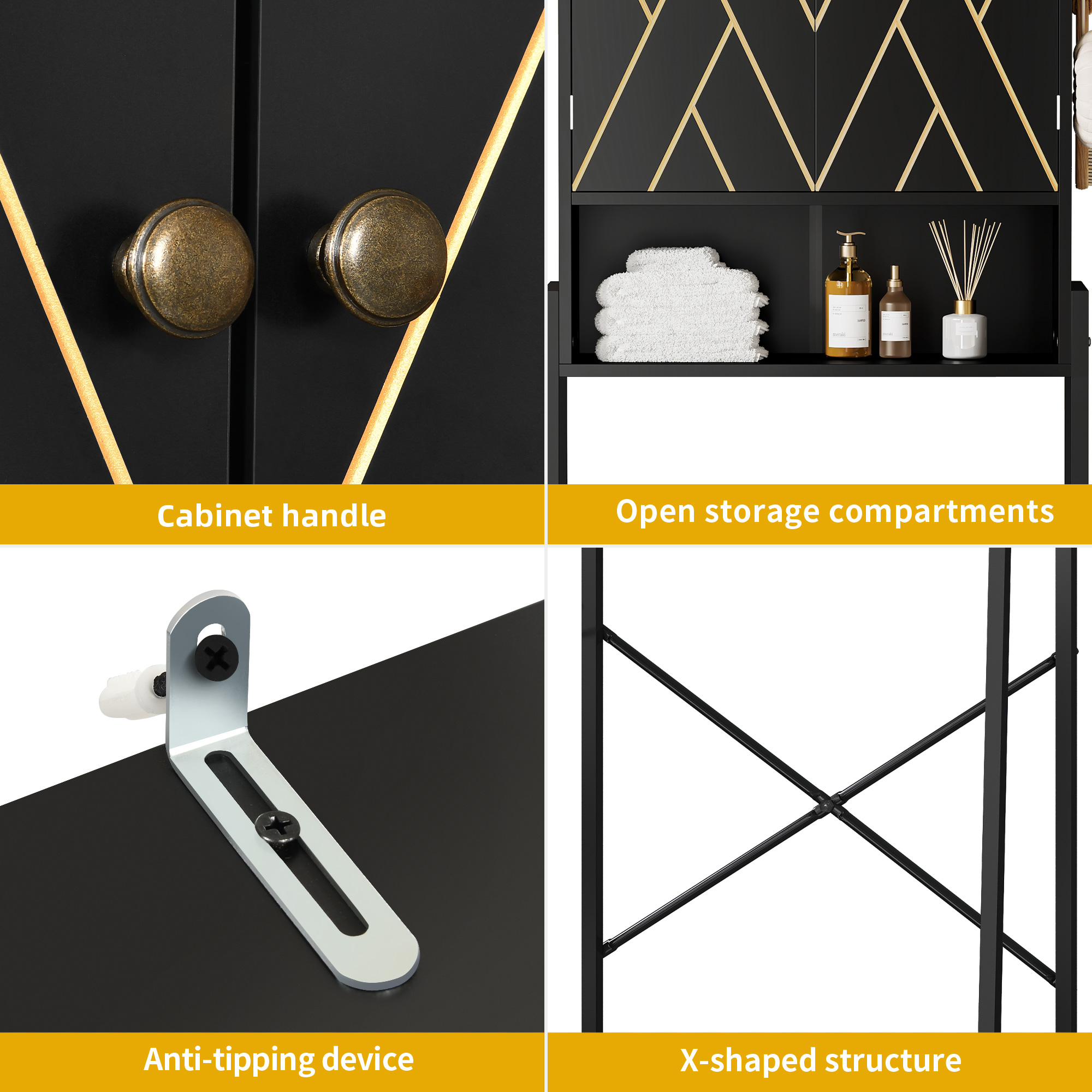 Constructed of anti-tip kit, X-shape crossbars and heavy duty metal frames, our bathroom rack over the toilet offers extra stability and weight capacity.