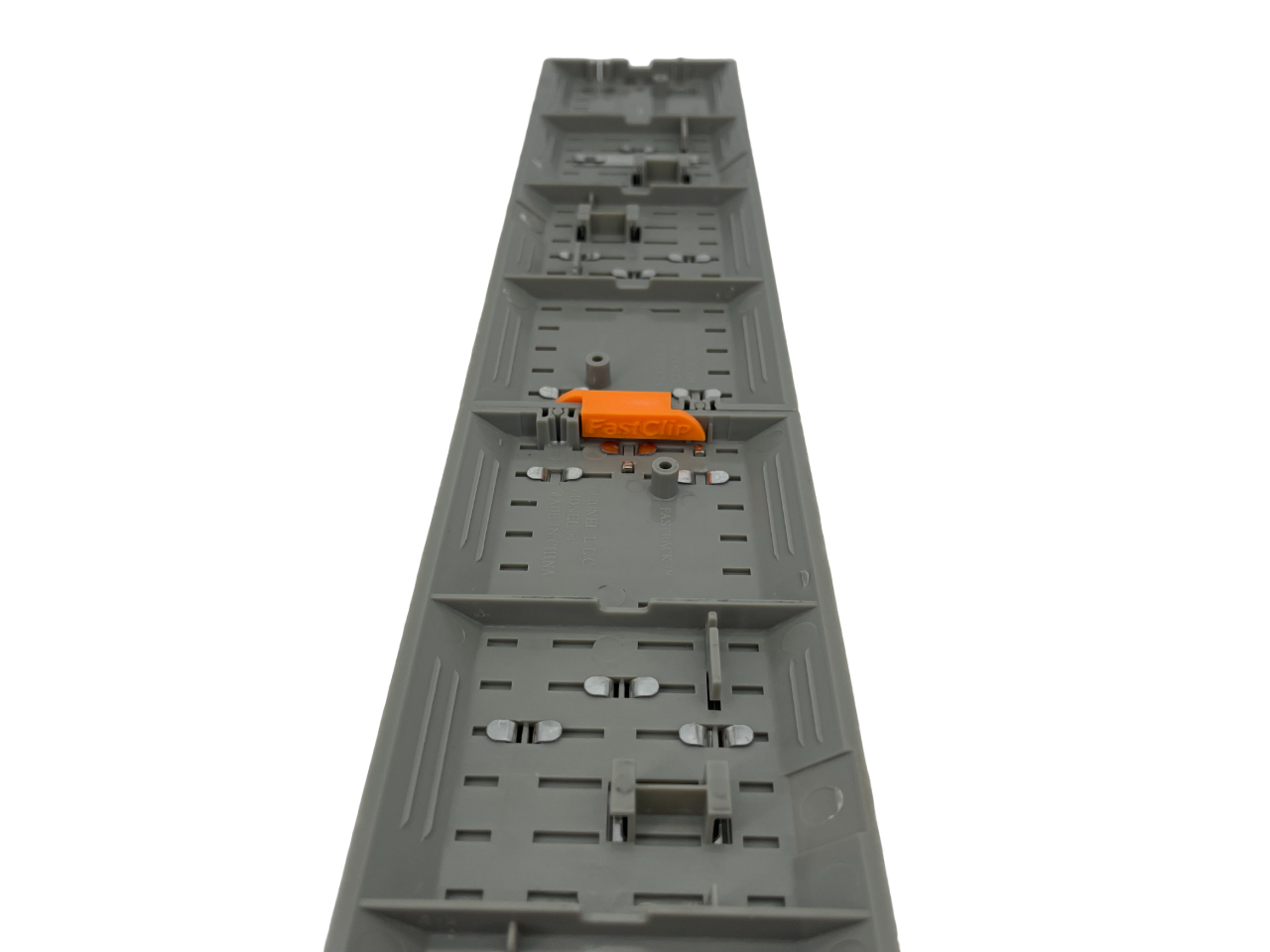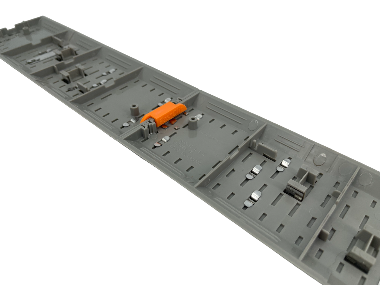 Pro-Clips are designed specifically for flat surfaces and permanent or semi-permanent layouts. They match Lionel's FasTrack roadbed profile and provide the same secure connection as Fast Clips-without any underside protrusion. This allows the track to sit perfectly flush on floors or layout surfaces, which is critical for smooth, reliable operation.