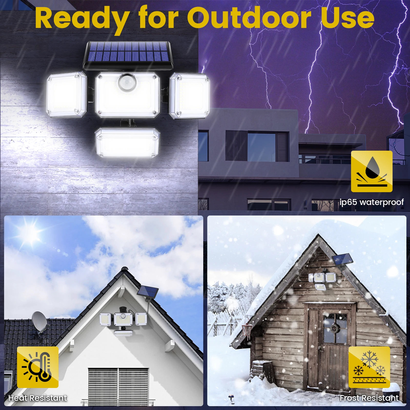 4-Kopf 346 LED Solarleuchte Solarlampe mit Bewegungsmelder Außen Gartenleuchte Wand Fluter PIR Sensor Strahler 2023NEU