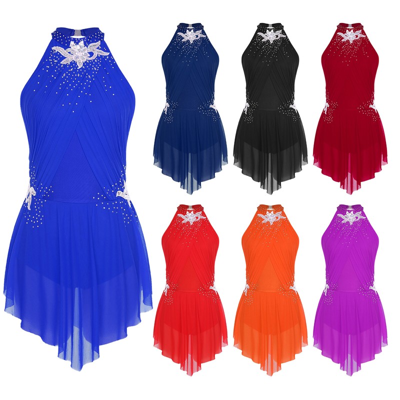 Women’s Latin Dance dress with sparkling sequins and contrast color patchwork design, make you eye-catching and stunning.