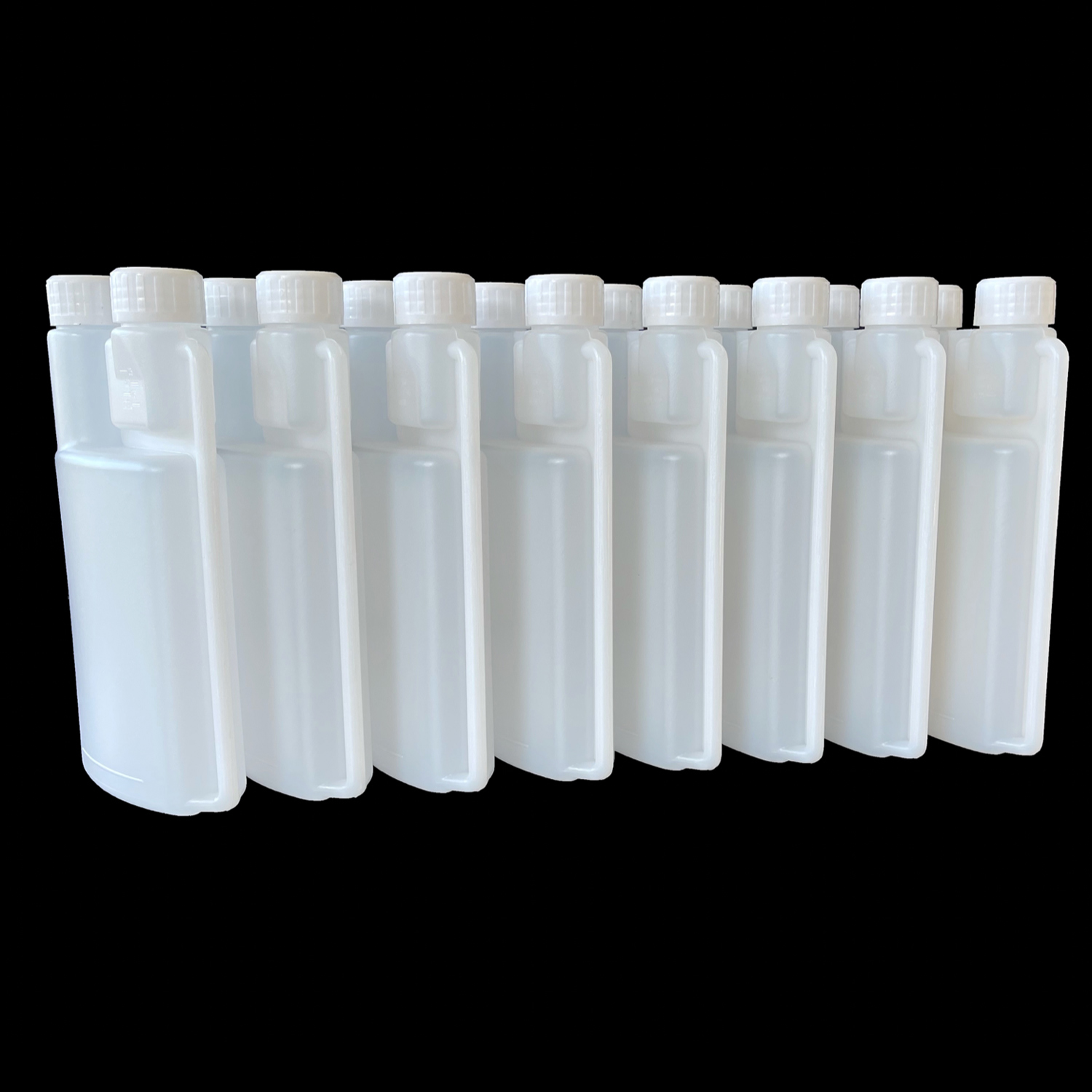 1L Plastic Bottle: Twin chamber/Twin neck that holds 50ml.