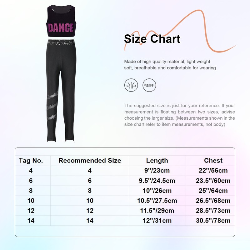 | Tag No. | Recommended Size | Tops Length | Chest | Leggings Length | Leggings Waist | Hip |