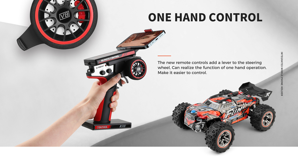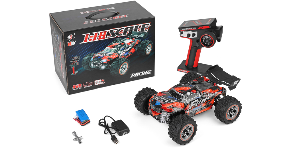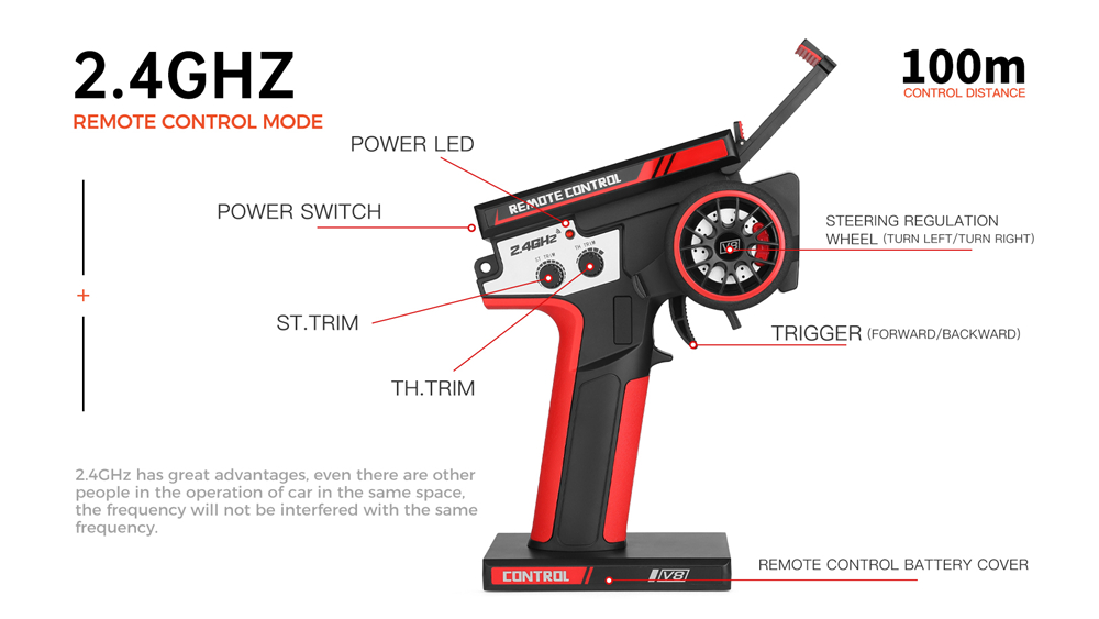 3. RTR REMOTE CONTROLLER - The easy-to-use 2.4GHz non-interference remote controller makes the car ready to run without interference enabled by its anti-jamming features. The radio control distance is about 100 meters. It is a great off-road monster truck for indoor and outdoor use.