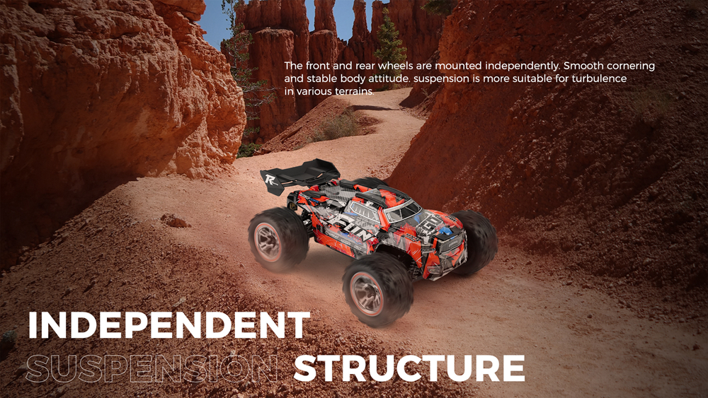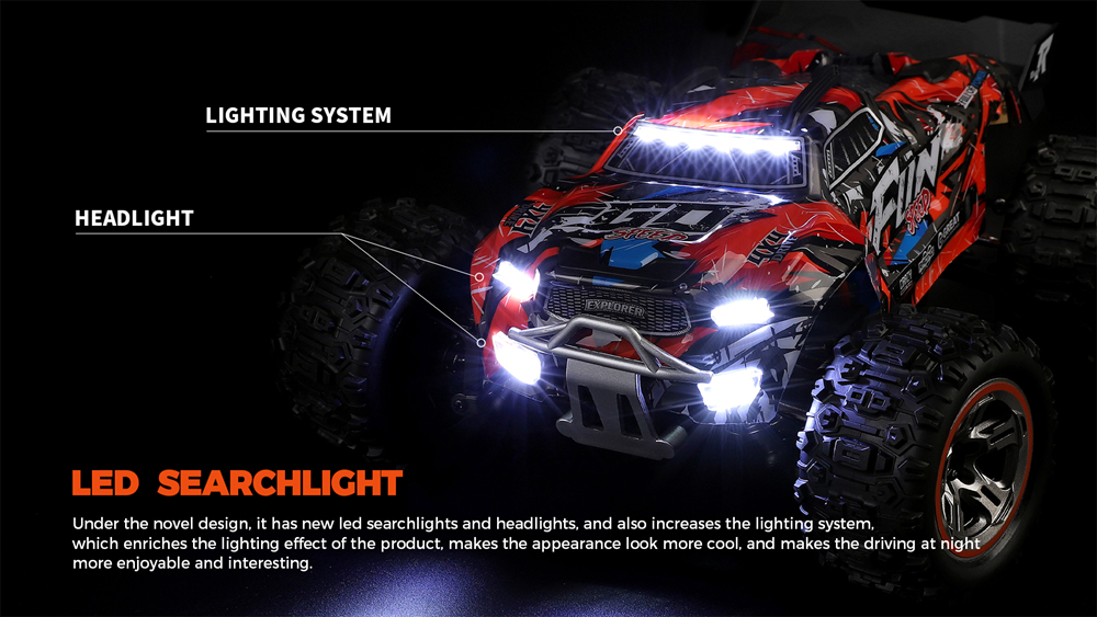 2. STABLE PERFORMANCE - The 1/18 scale makes it easier to control. It can reach speeds up to 60 km/h at full speed with a powerful built-in brushless motor. Its powerful performance makes this RC car an ideal toy for boys and girls of 8 years old and above. Adults can also have a good time for sure.