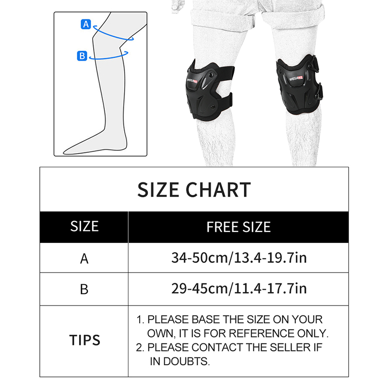 Knee Pads: Upper leg circumference 34-50cm, lower leg circumference 29-45cm