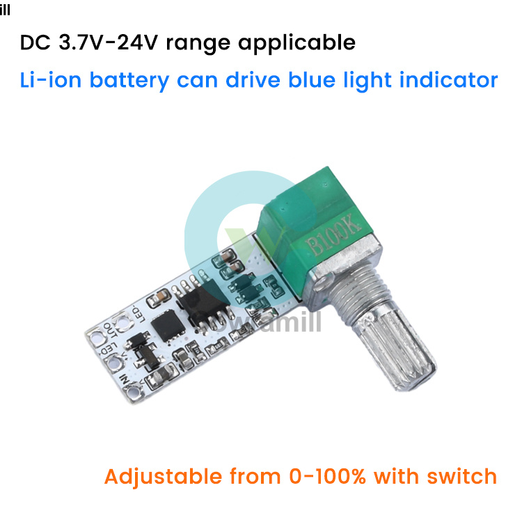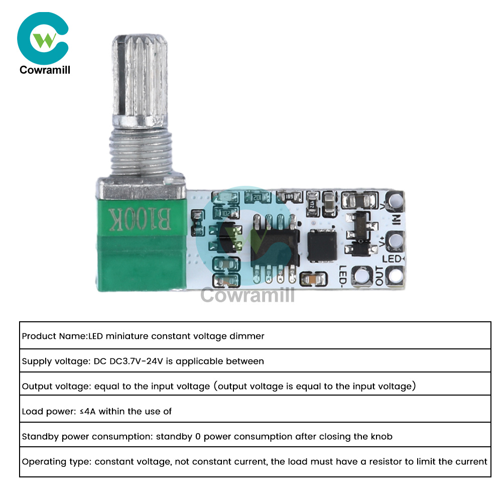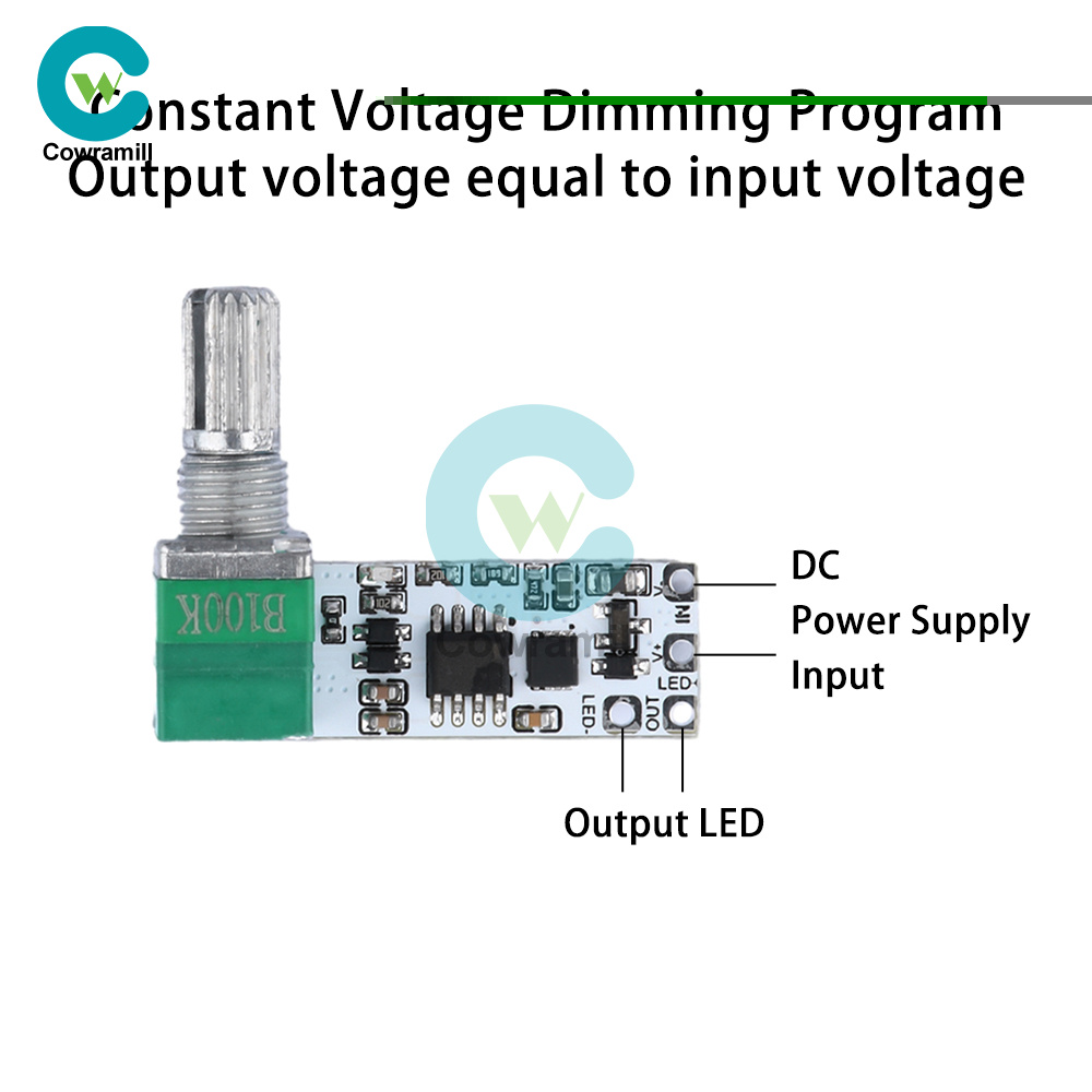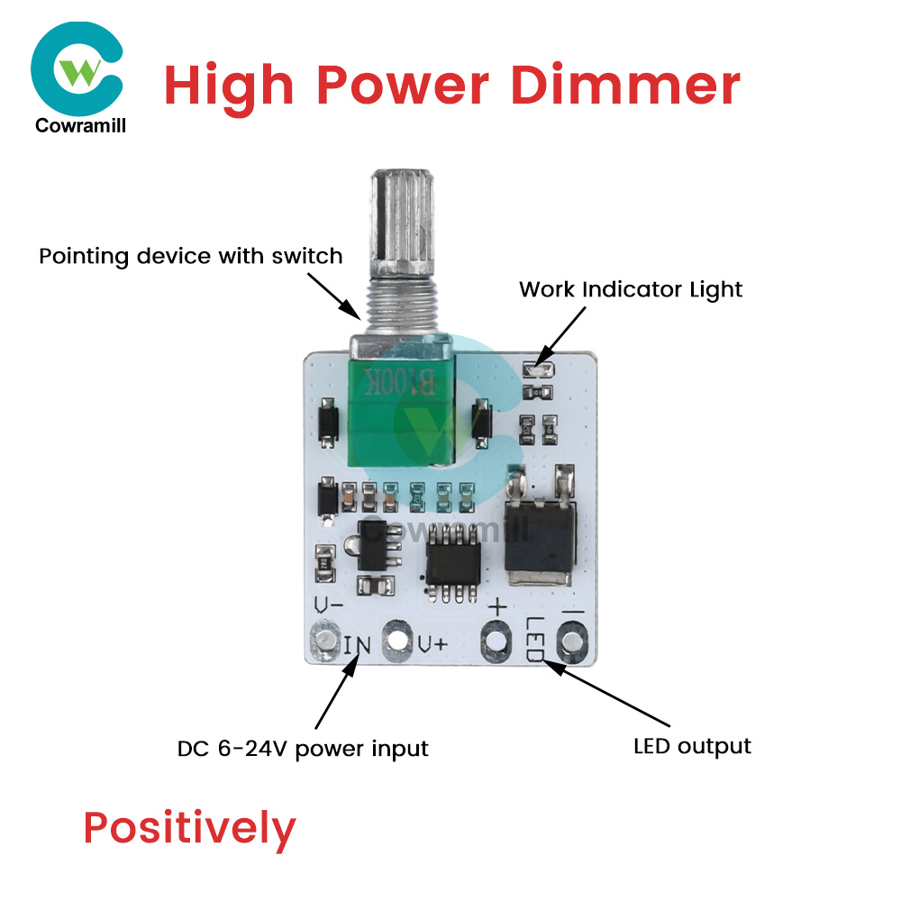 This is a DC high-power LED dimming board module, with power switch function, adjustable range 0-100%, dimming without strobe, with standby indicator, drive easy to match, with DC adapter power supply, suitable for all kinds of DC12-24V constant voltage LED strip light strip use, can be used for commercial lighting projects, home lighting lamps floor lamps, advertising lighting, medical equipment light boxes, and many other occasions that require dimming, to realize the switch / constant current load must be resistor current limiting. Need dimming occasions, to realize the switch / dimming function, using the traditional mechanical knob type, simple to use, high security.