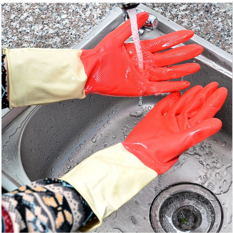 Premium Material: Crafted from premium rubber, our Household Cleaning Gloves guarantee exceptional quality. Shield your hands effectively, preventing direct contact with corrosive liquids and ensuring dryness for both hands and clothes. Solid protection against shattered glass and prickly objects, eliminating worries during household tasks.