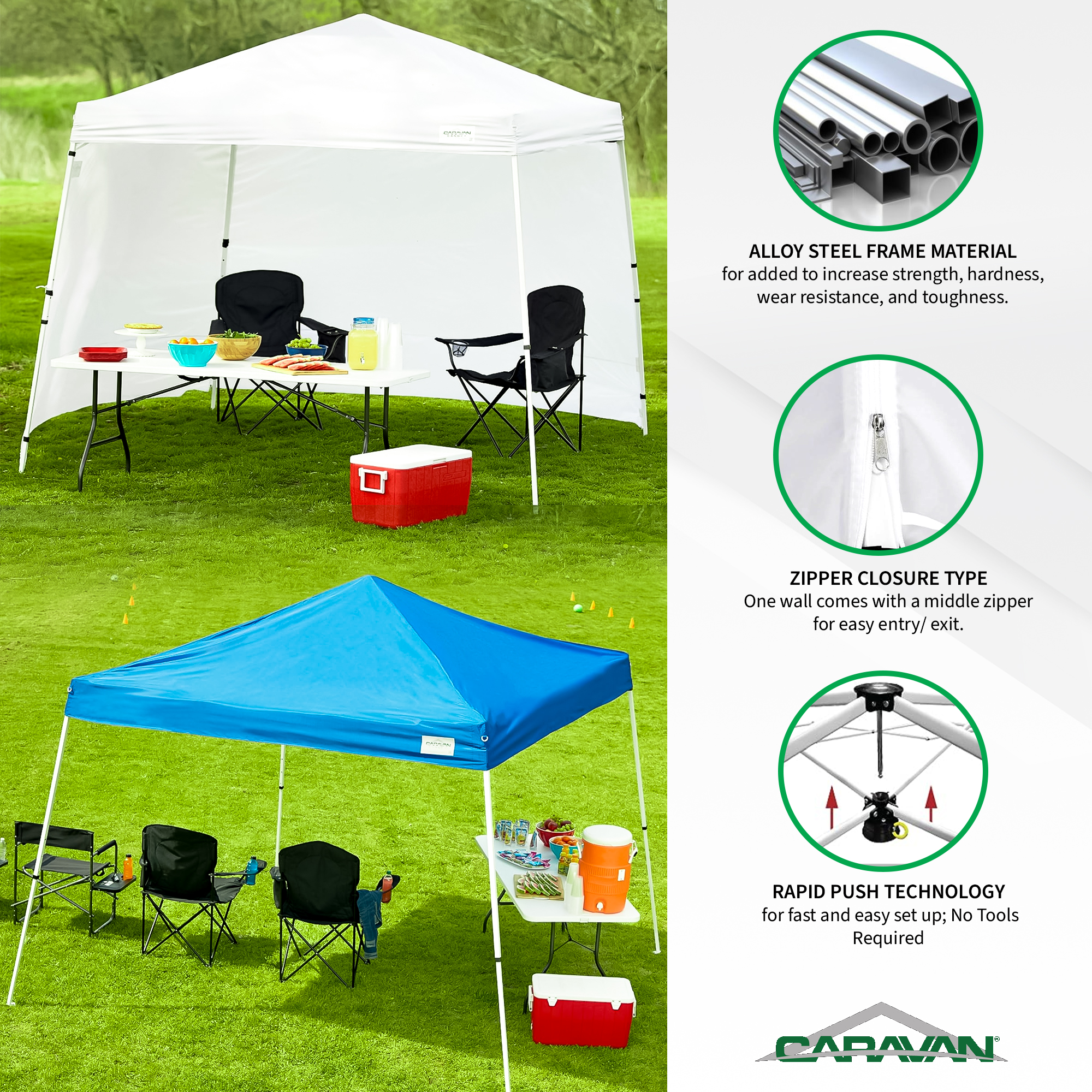 Experience the ideal blend of style and utility with the Caravan Canopy V-Series 2 Slanted Leg Sidewall Kit and Instant Canopy Kit.
