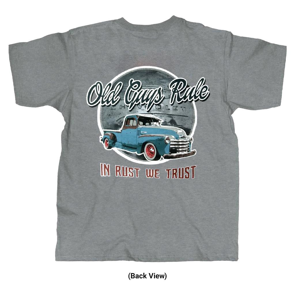 Old Guys Rule In Rust We Trust T-Shirt Is A Perfect Gift For Your Old Man, Whether It's Your Husband, Dad, Grandpa or Uncle. Made of a 50/50 cotton/polyester blend that runs true to size, this premium t-shirt can be machine washed and tumbled dry medium. Do not iron design.