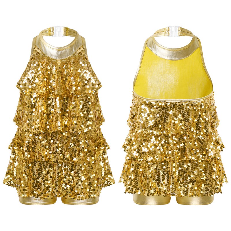 DE iEFiEL Kinder Mädchen Glitzer Tanzkleid Latin Ballett Jazz Neckholder Kleid