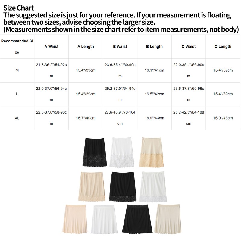 Ideal for under dress, skirts, T-shirt dress, wedding dresses and more, also can as a dress extender. Hand wash recommended. Size Chart