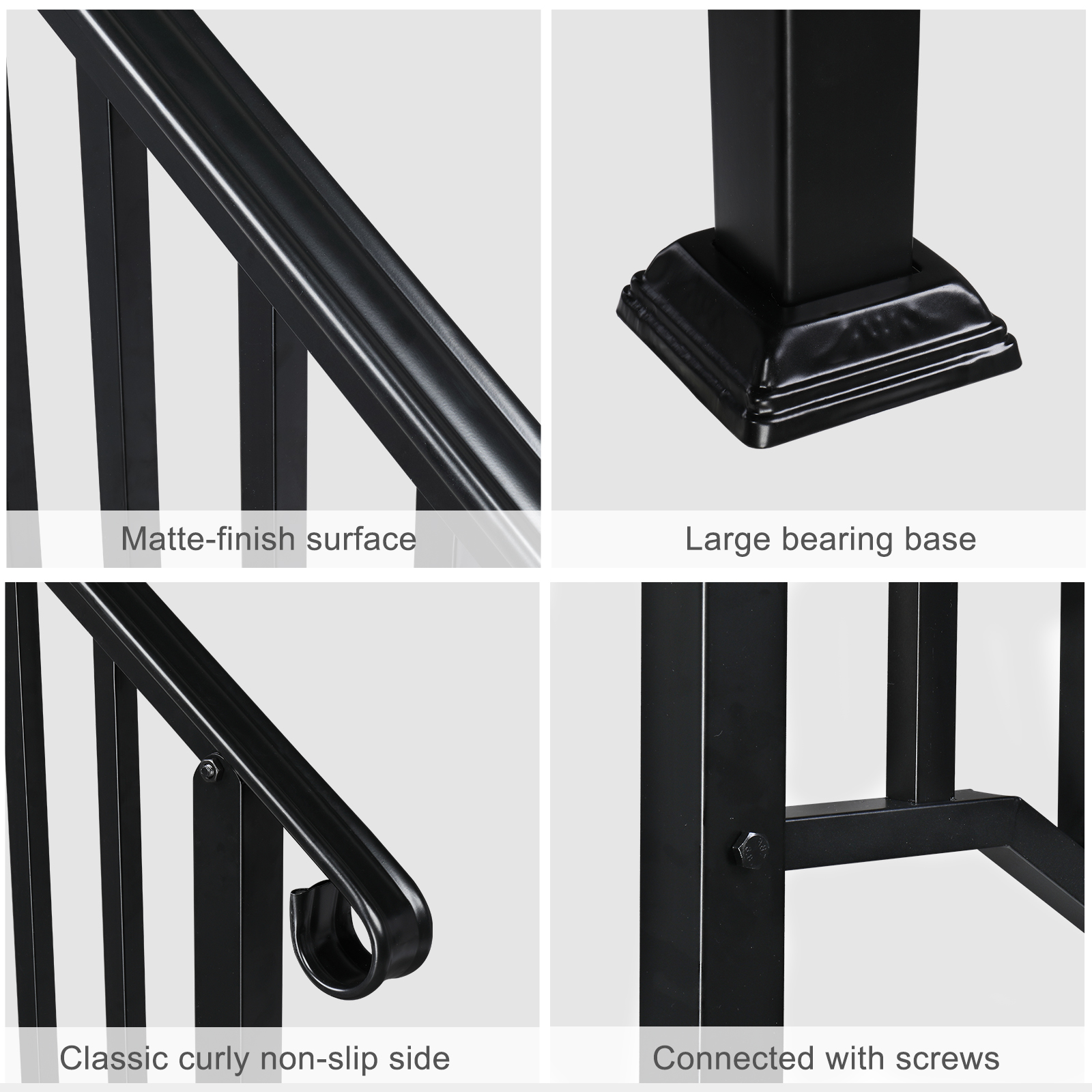 2. This handrail is constructed with iron(galvanized iron), not aluminum. It is more strong and reliable and will not fail or bend like aluminum.