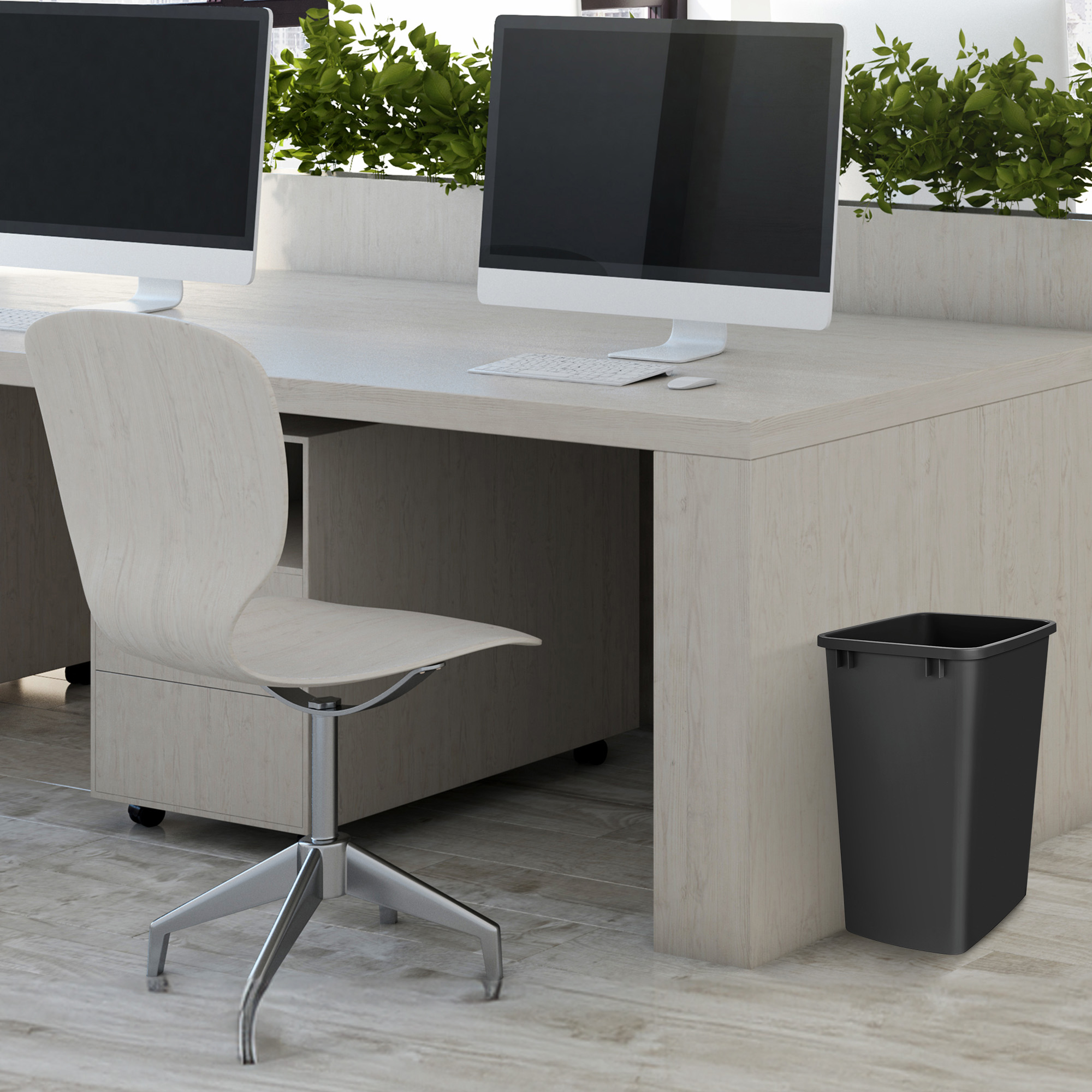 Made of injection molded polymer plastic for increased durability, the double waste containers will be an ideal addition to your home to hide away the trash and ensure your kitchen smells fresh at all times. Though designed to work with all of the Rev-A-Shelf waste containers and trash Pullouts, they can also be used to hold extra trash or recyclable items no matter where you need them, whether it be inside or outside. The 35 qt. capacity will keep you from having to empty the basket numerous times a day for ultimate convenience. With a neutral black color, these modern waste bins will fit perfectly inside your cabinets or can be left out and placed beside a kitchen cabinet, bedroom dresser, or bathroom sink.