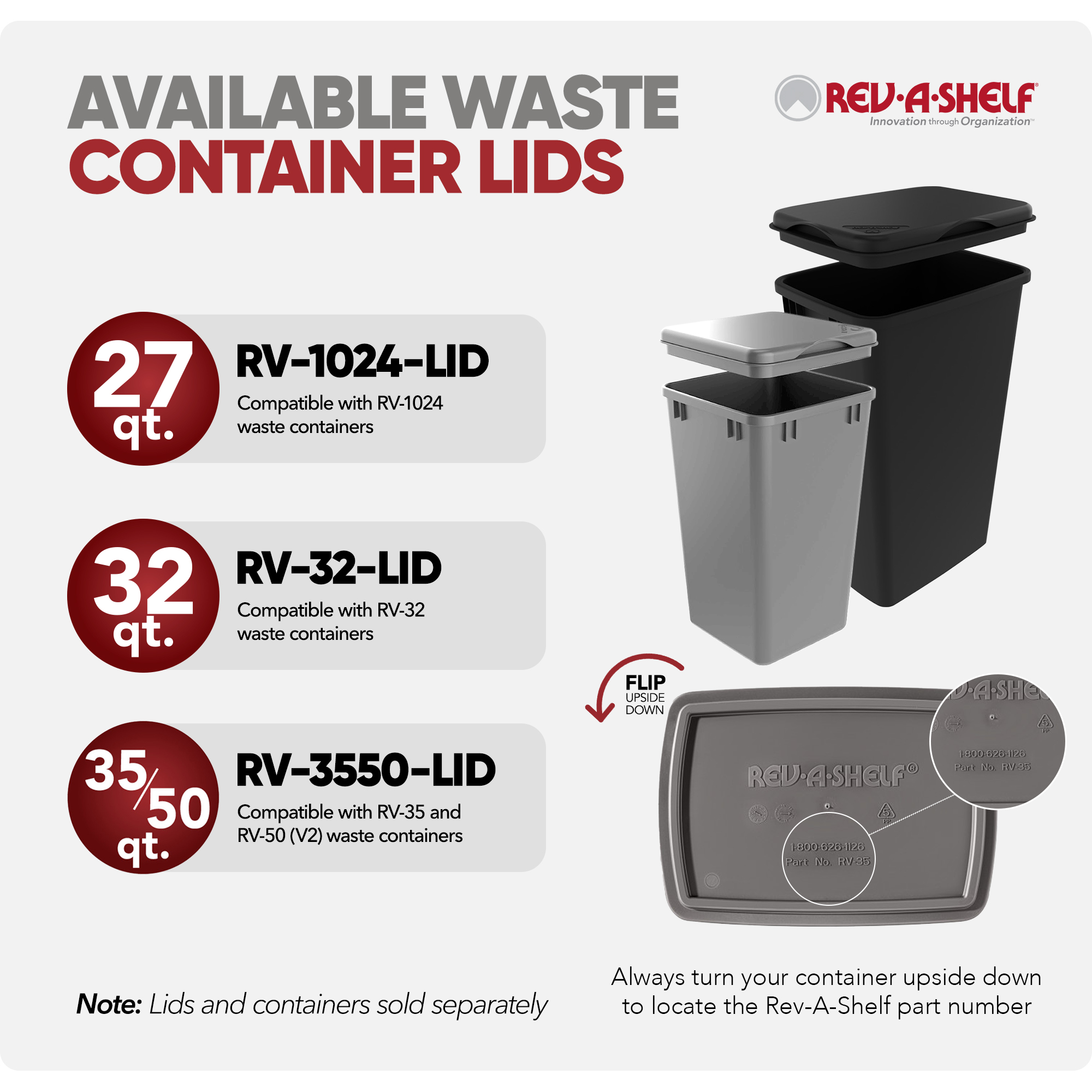 Please note, the Rev-A-Shelf waste container frames are sold separately. So, keep your home looking neat and smelling even better while also conserving space with the set of 2 Rev-A-Shelf 35 qt. Waste Containers.