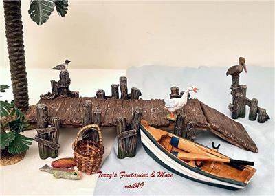This 2pc Dept 56 Boat Dock/Pier along with the Rowboat w/2 Oars, Duck, & Basket w/2 Fish Works Great in a Fontanini Display with the 5" Series Figures. 9 Pcs in All. Would Also Fit Nicely with the 4" Figure Series.