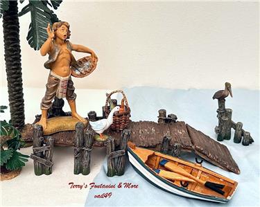 Fontanini Depose Italy "Dept 56 2pc Pier w/3pc Rowboat & More" 9pc Accessory Set - 5" Series Village Nativity