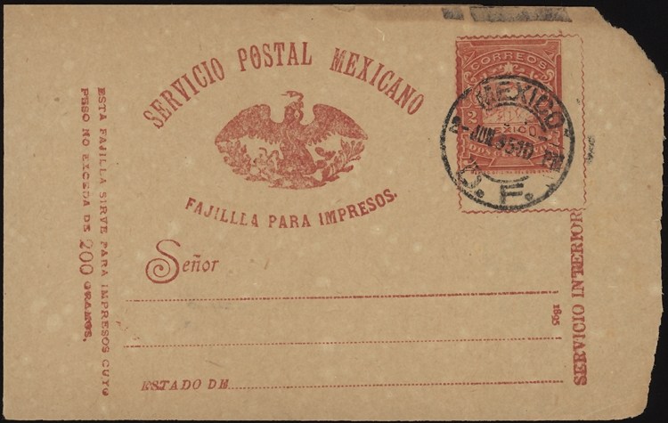Mexico, 1895. Wrapper, MEPSI WR 24, tied by Mexico City favor cancel 2 Jun 95. F-VF.