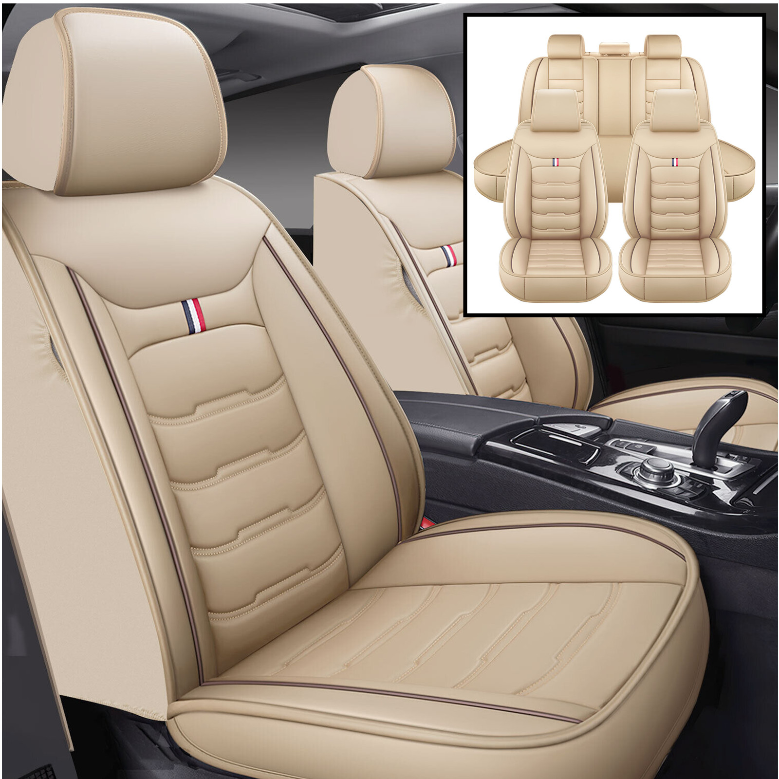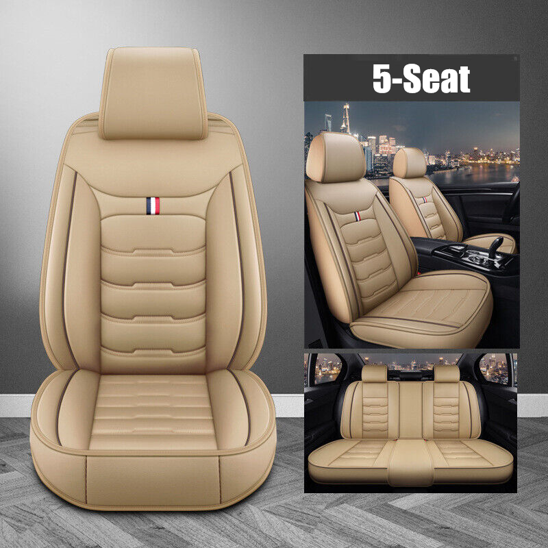 For Nissan Car Seat Cover 5-Seat Full Set Leather Front & Rear Protector Beige