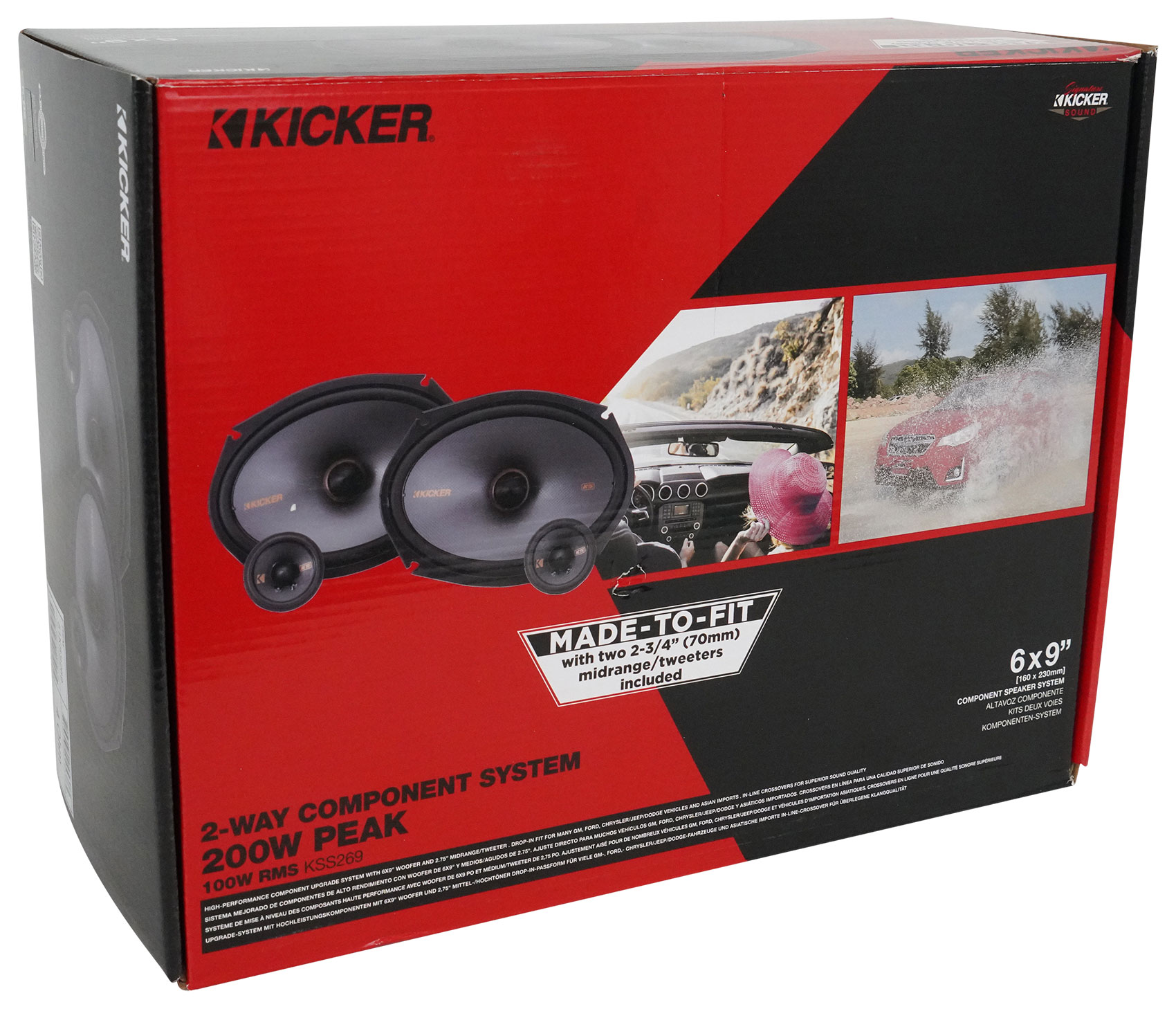 The KSS269 high-performance component upgrade system is made-to-fit with a pair of 6 x 9-inch woofers and 2.75-inch mid/tweeters, a larger size which is required in many of today’s factory speaker locations.