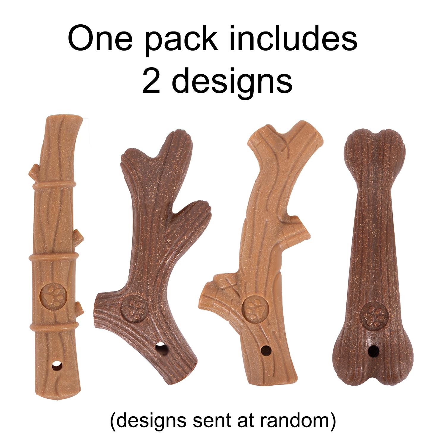 DESIGN: One pack will include 2 of 4 fun designs for your pooch - bamboo branch, antler, twig, and bone (designs are sent at random).