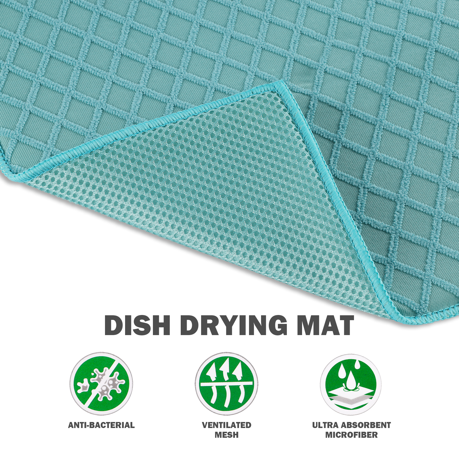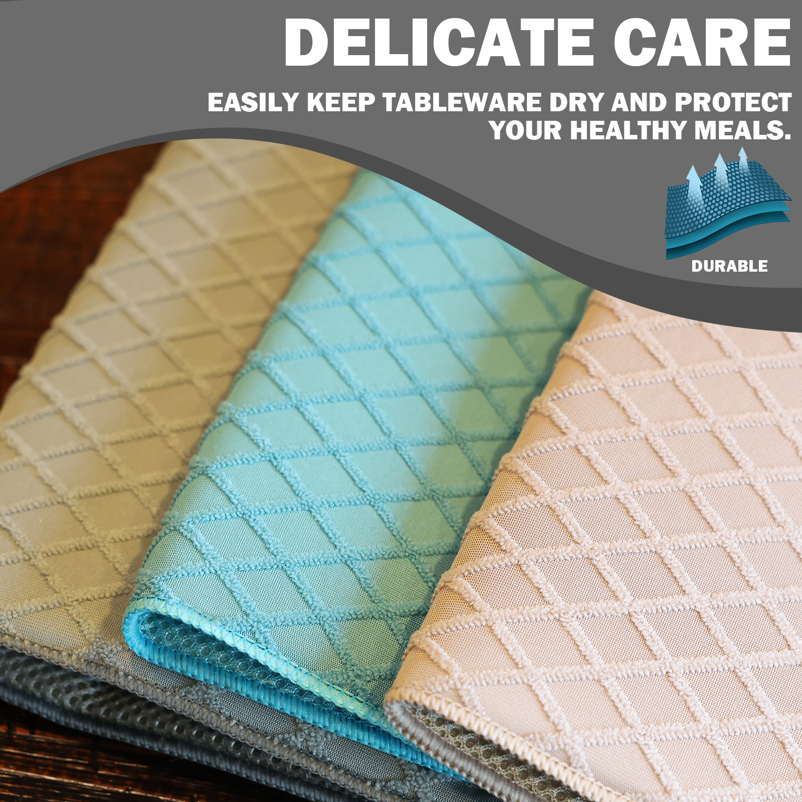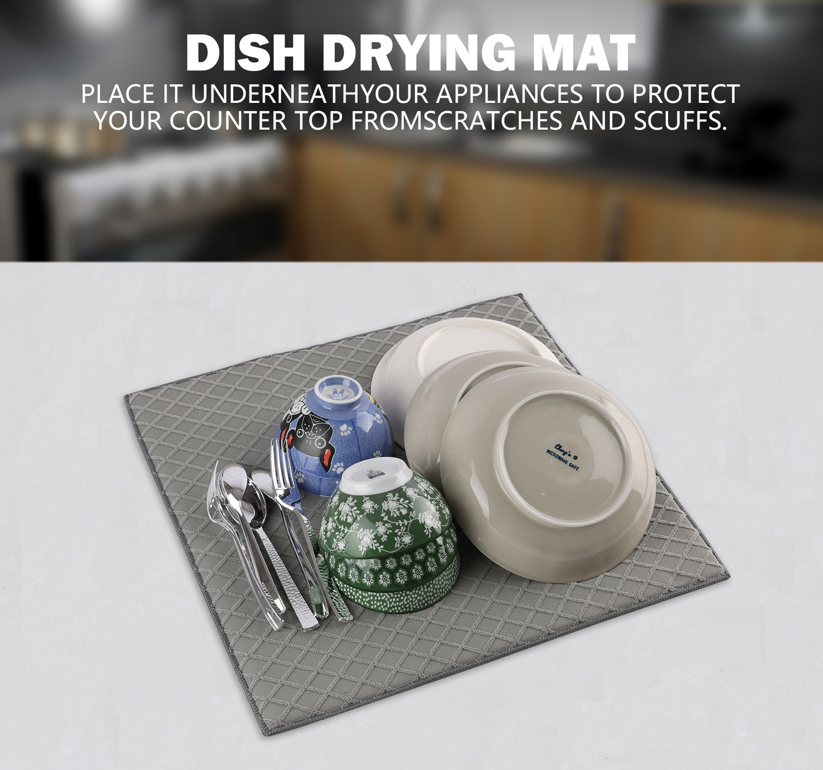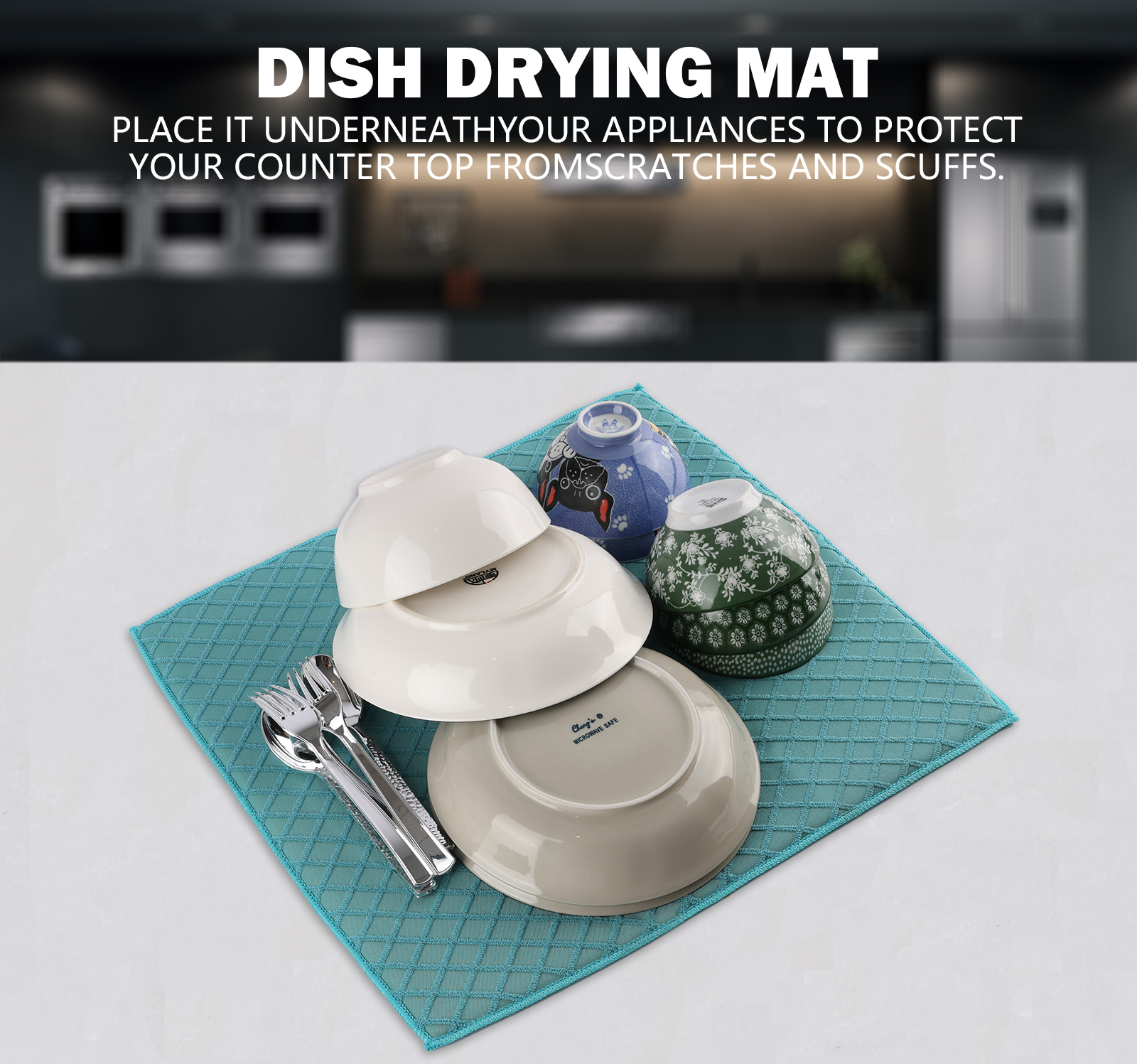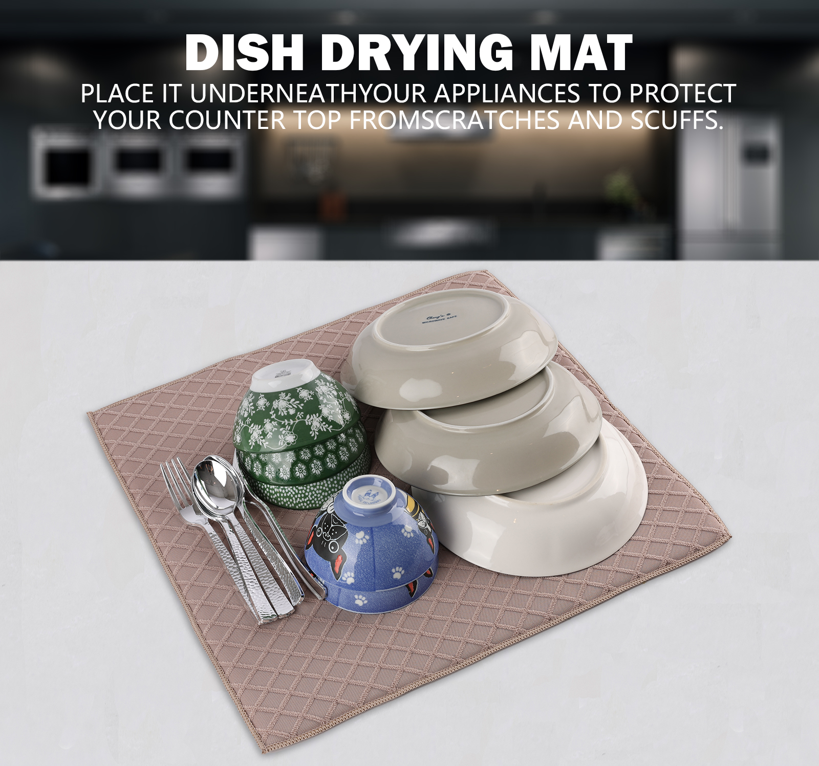 Super Absorbent: Crafted from microfiber, our mat swiftly absorbs moisture from your dishes, ensuring both your dishes and countertops stay dry.