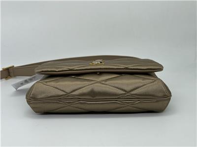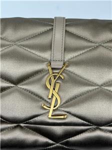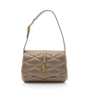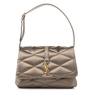 A polished monogram and diamond matelassé stitching pay tribute to Yves Saint Laurent on a satin flap shoulder bag named Le 57.