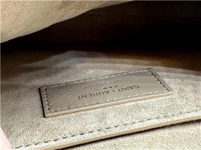 - The interior of the bag is lined in suede