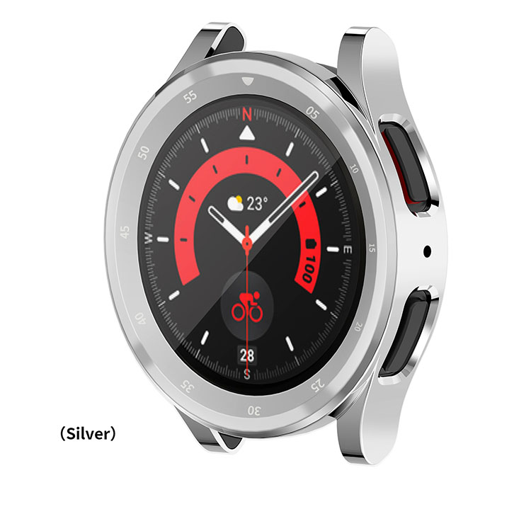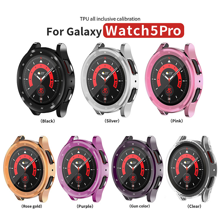Watch Protective Case With Scale Full Package Tpu Case For Samsung Watch5 Pro 45mm Features: l Made of high-quality material, soft and comfortable, safe and nontoxic l It can well protect your device from scratches, bumps, dust and damages l Perfectly fit for your device l A variety of colors for your choice Specification: l Material: Tpu l Applicable Model: for Samsung Galaxy Watch5 pro 45mm l Color (Optional): Transparent, Silver, Black, Pink, Rose Gold, Gunmetal, Purple Package Includes: 1x Watch Protective Case