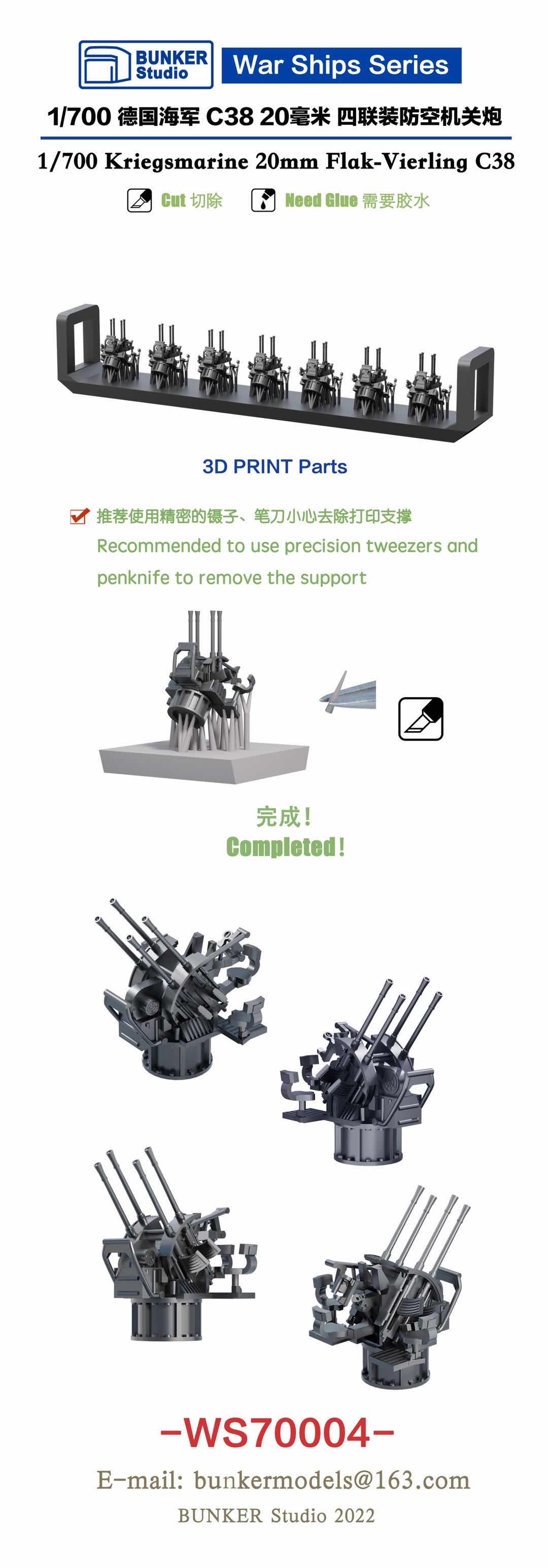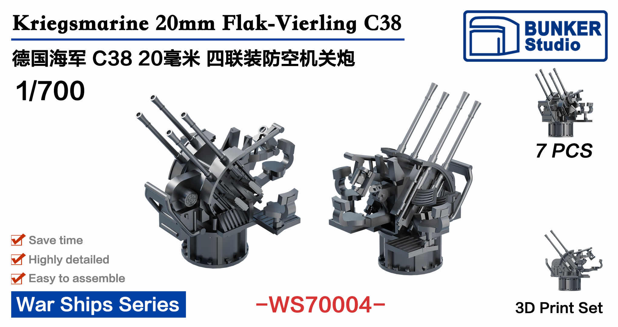 BUNKER WS70004 1/700 Scale Kriegsmarine 20mm Flak - Vierling C38