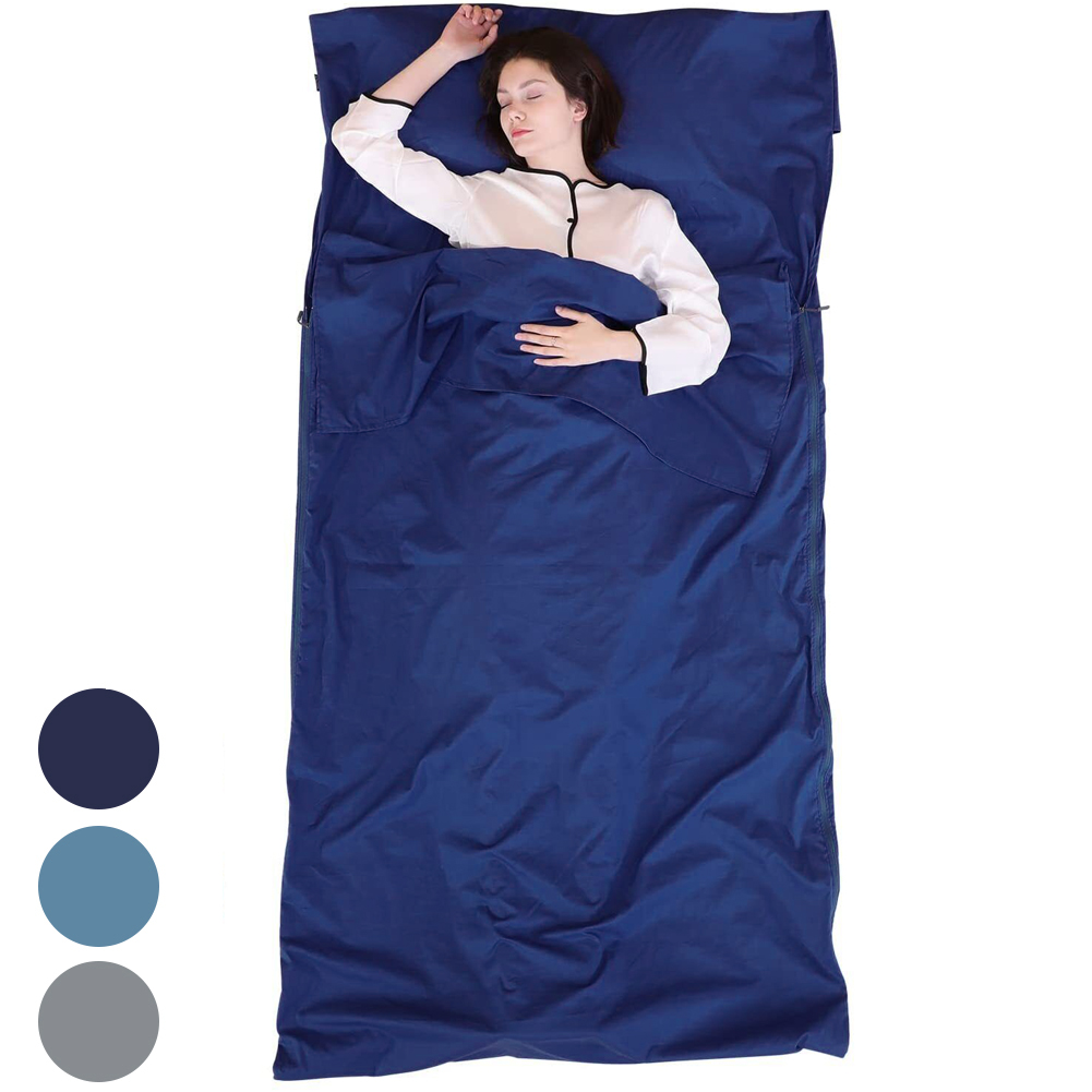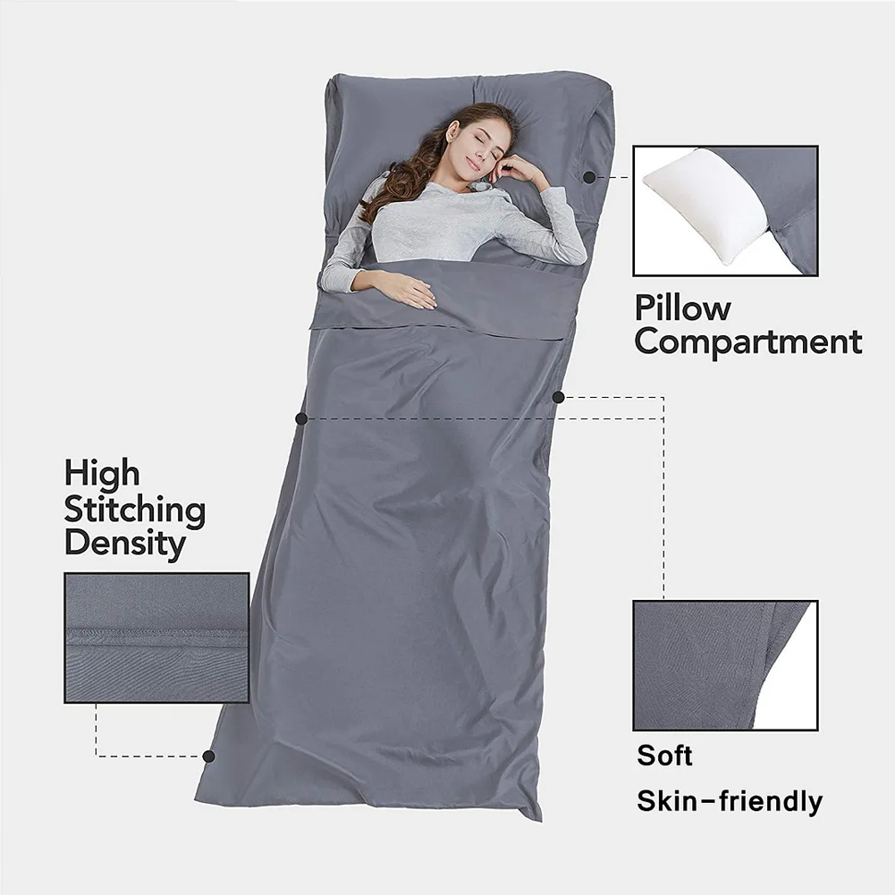 【STYLISH DESIGN】 Exquisite compact workmanship, the sleep bag liner that packs small, quality assurance. Pillow hood designed for travel sleep sack pocket for pillow insert. Any size pillow or clothes can fit in. Stitching down both side of pillow pocket to avoid pillow leave out. The side extra triangle fabric with tearing resistance and also provides generous space for you to get into or out the liner easily.