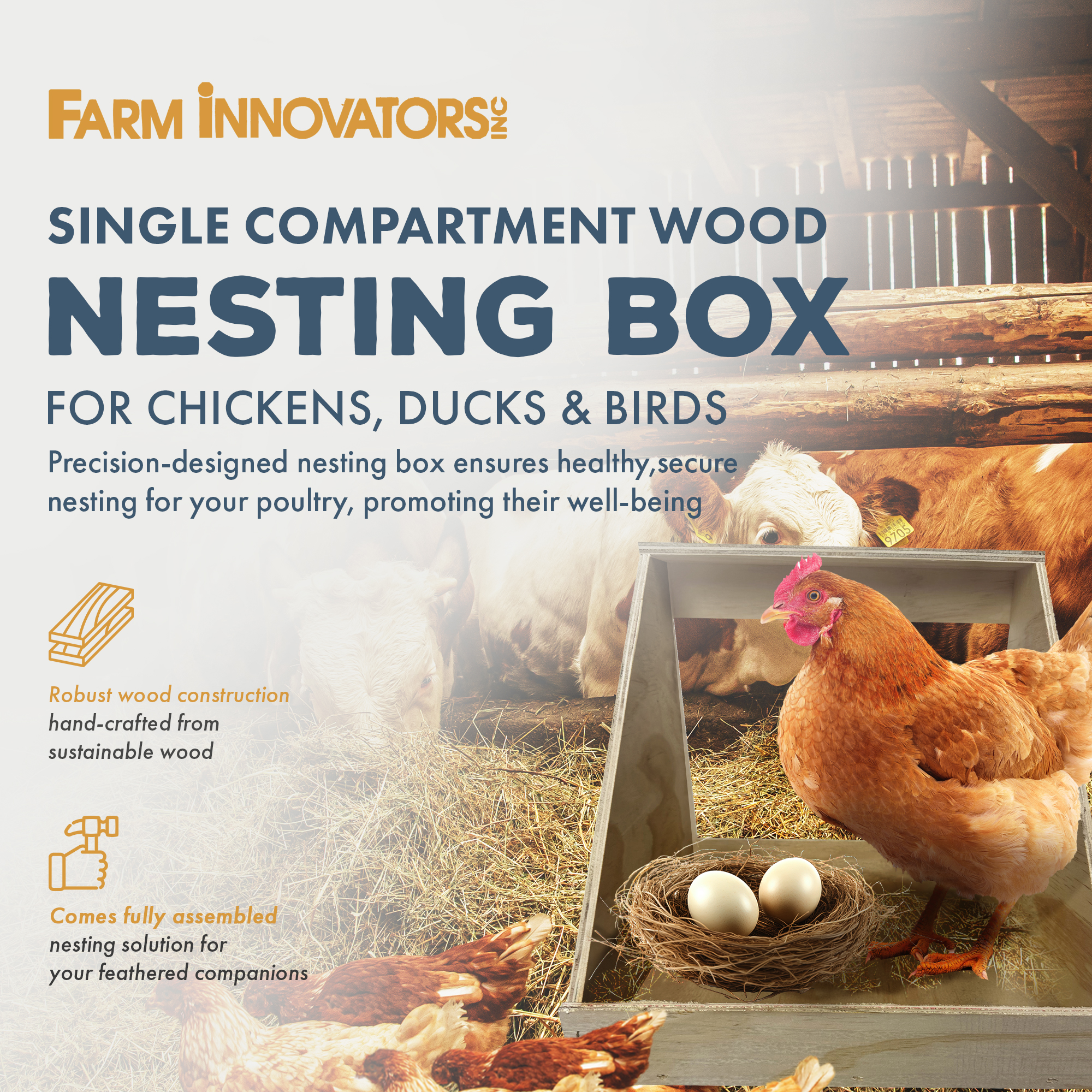 Provide a secure sanctuary for your poultry livestock with the Farm Innovators Single Compartment Wood Nesting Box, an exquisitely crafted haven meticulously designed to foster optimal conditions for the well-being and security of a diverse array of avian companions.