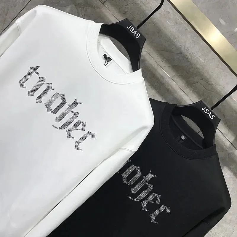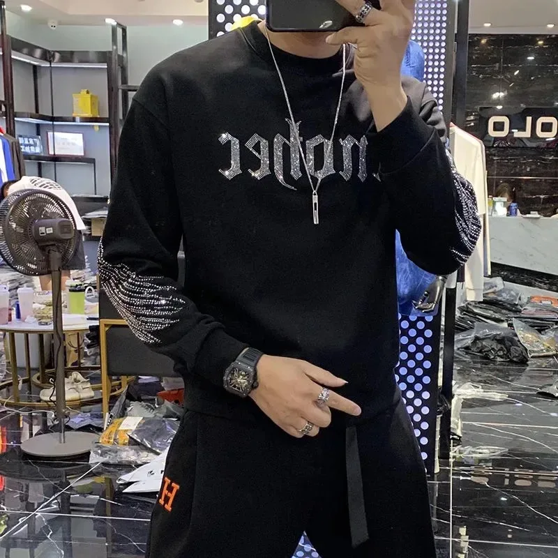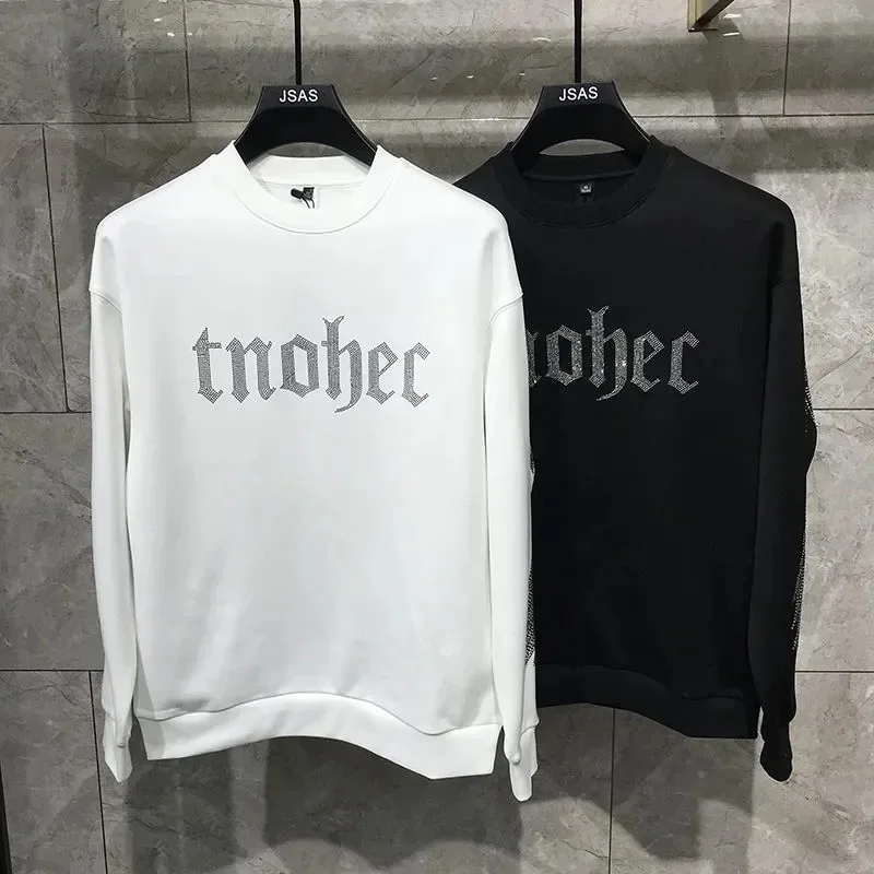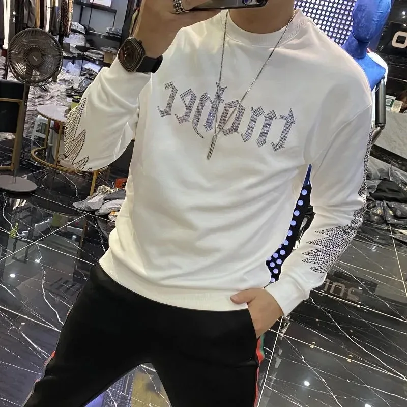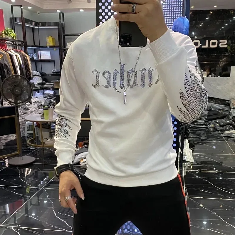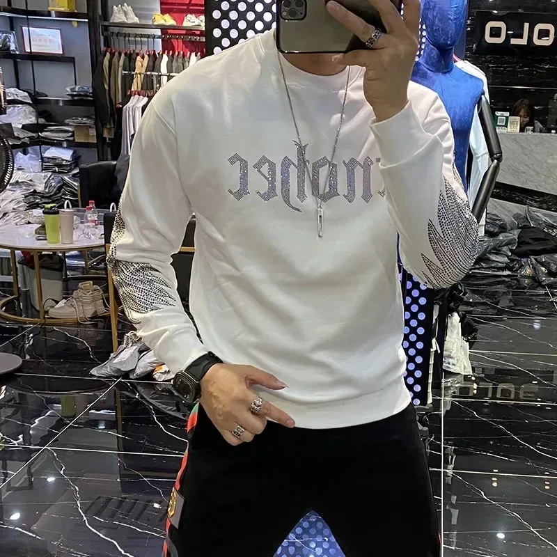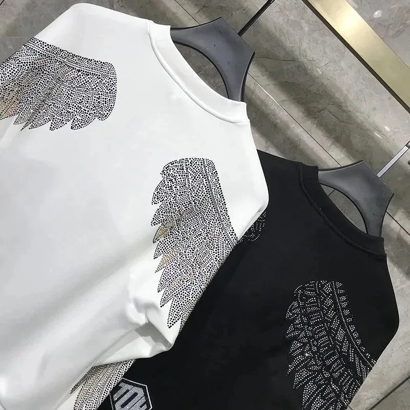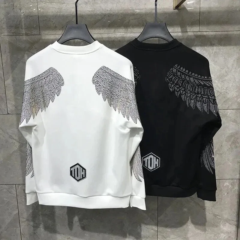 New Men Luxury Diamond Wings Rhinestones Fashion Black White Hoodie High Quality