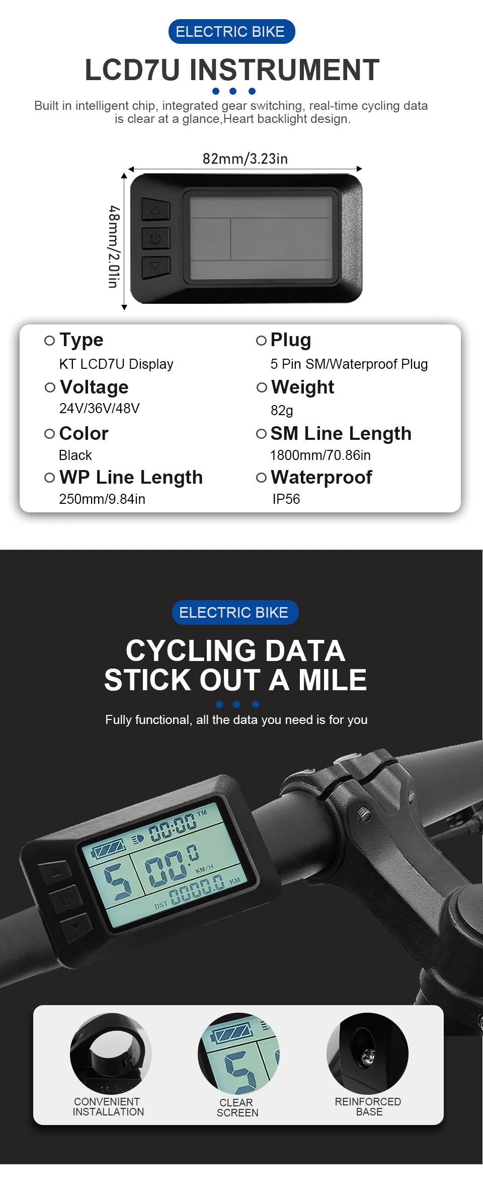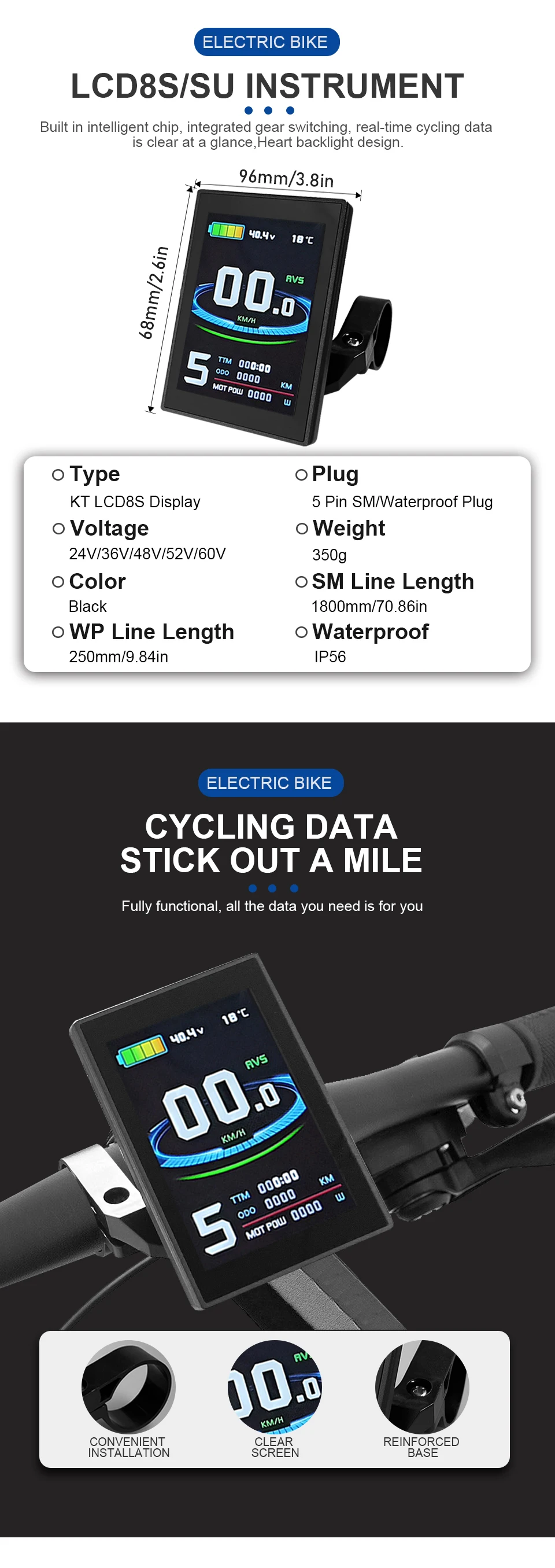 1.LCDhas ascreenthat displays data,such as speed, power, mileage, and more accurately displays bicycle data.
