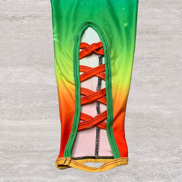 Rainbow Side Crisscross Cutout Capri Soft Leggings W/ Pockets