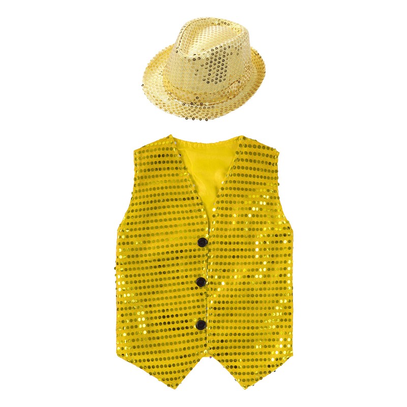 Kids Boys Glitzerweste mit Hutset zum Tanzen.
