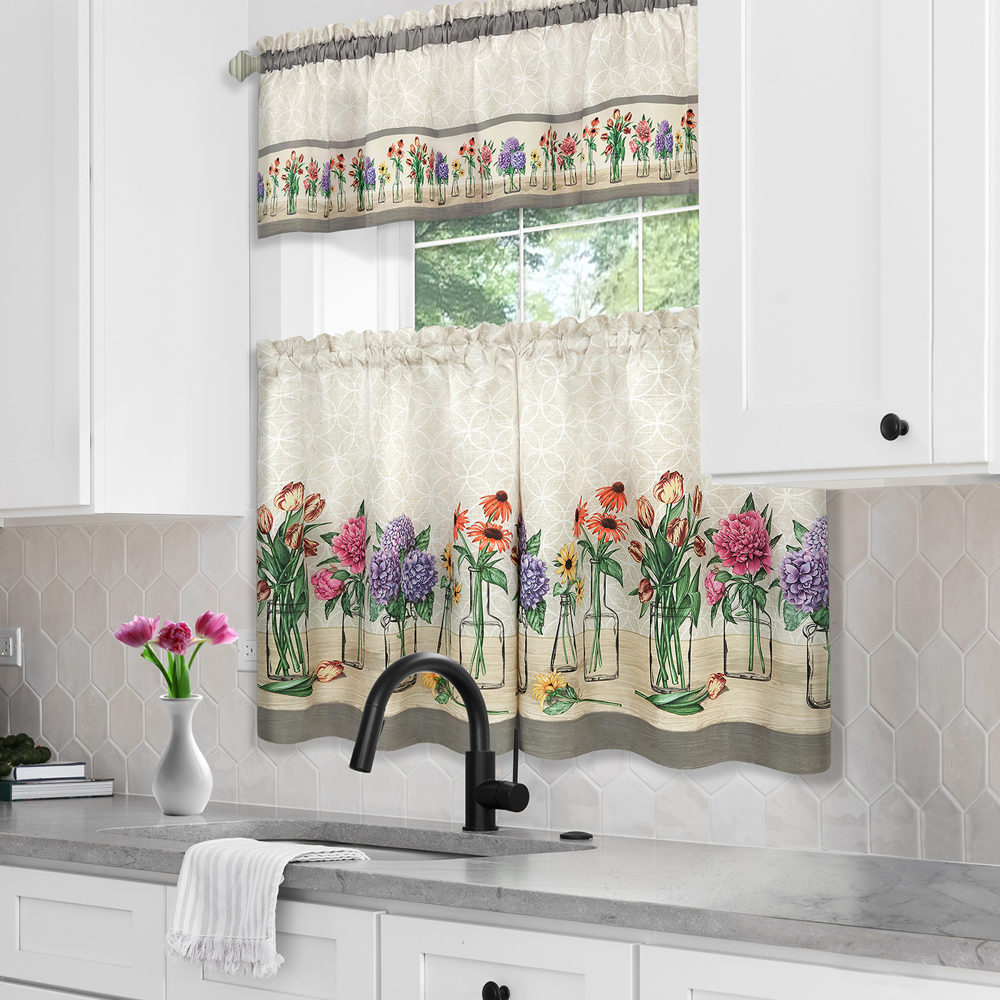 Introducing Achim Home Furnishings, the ultimate enhancement for your living room ambiance. Our premium kitchen tier pair and valance set, crafted from 100% polyester, promises to revolutionize your daily living experience. Say goodbye to the ordinary and welcome a blend of practicality and sophistication into your home. Why should you invest in this indispensable product? Here's the scoop: Made from high-grade polyester, this decorative window tier pair and valance set not only adds charm but also guarantees a scent-free environment, elevating the overall atmosphere of your living space. Its lightweight yet durable construction ensures complete coverage while offering effortless handling. Installing our window tier pair and valance set is a cinch, thanks to its rod pocket hanging design, ensuring a secure and chic specially fit in the kitchen. Likewise, you can use living room, dining room, home office, bathroom and garage as well. But wait, there's more! This versatile tier pair and valance set goes beyond its primary purpose, seamlessly blending with any decor style, providing a multifaceted solution for your space. Maintenance? No sweat! Our window tier pair and valance set is machine washable, ensuring longevity and hassle-free care, making it the perfect addition to your home decor arsenal. Elevate your living room experience with Achim Home Furnishings - where practicality meets style effortlessly.