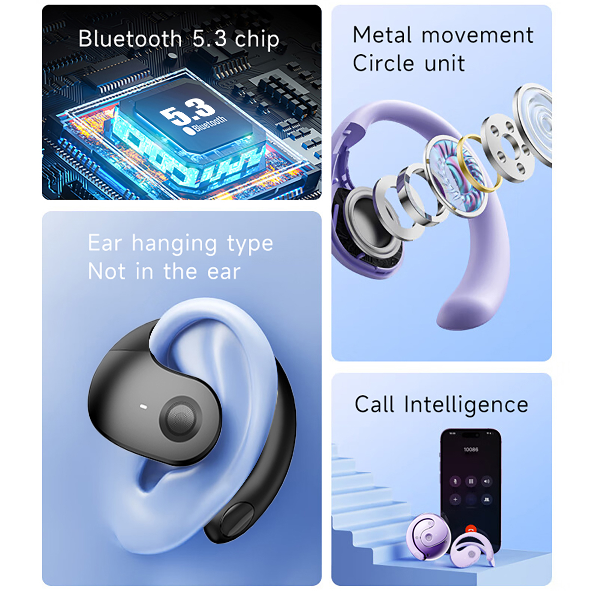 1. OWS headphones: open design, not to be worn in the ear, not tired after wearing for a long time.