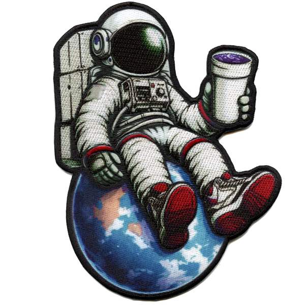 Introducing Syrup Astronaut On Top of the World Patch Houston Drank - the perfect way to explore out of this world! This quirky patch features an astronaut enjoying a syrup drink while floating in space. Add it to your collection or iron it on for a unique addition to your clothing.