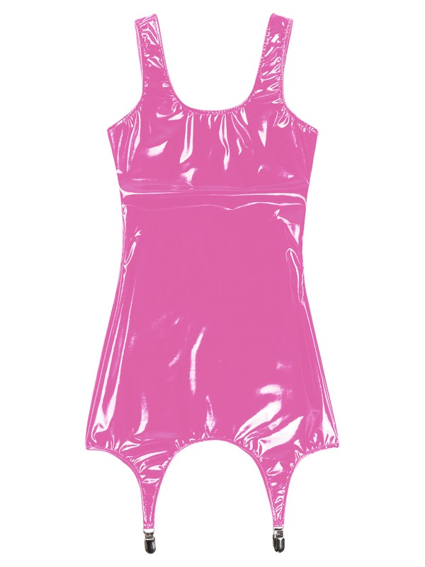Glossy patent leather tank dress for women, sleeveless, u neck, slim fit highlights your body curve.