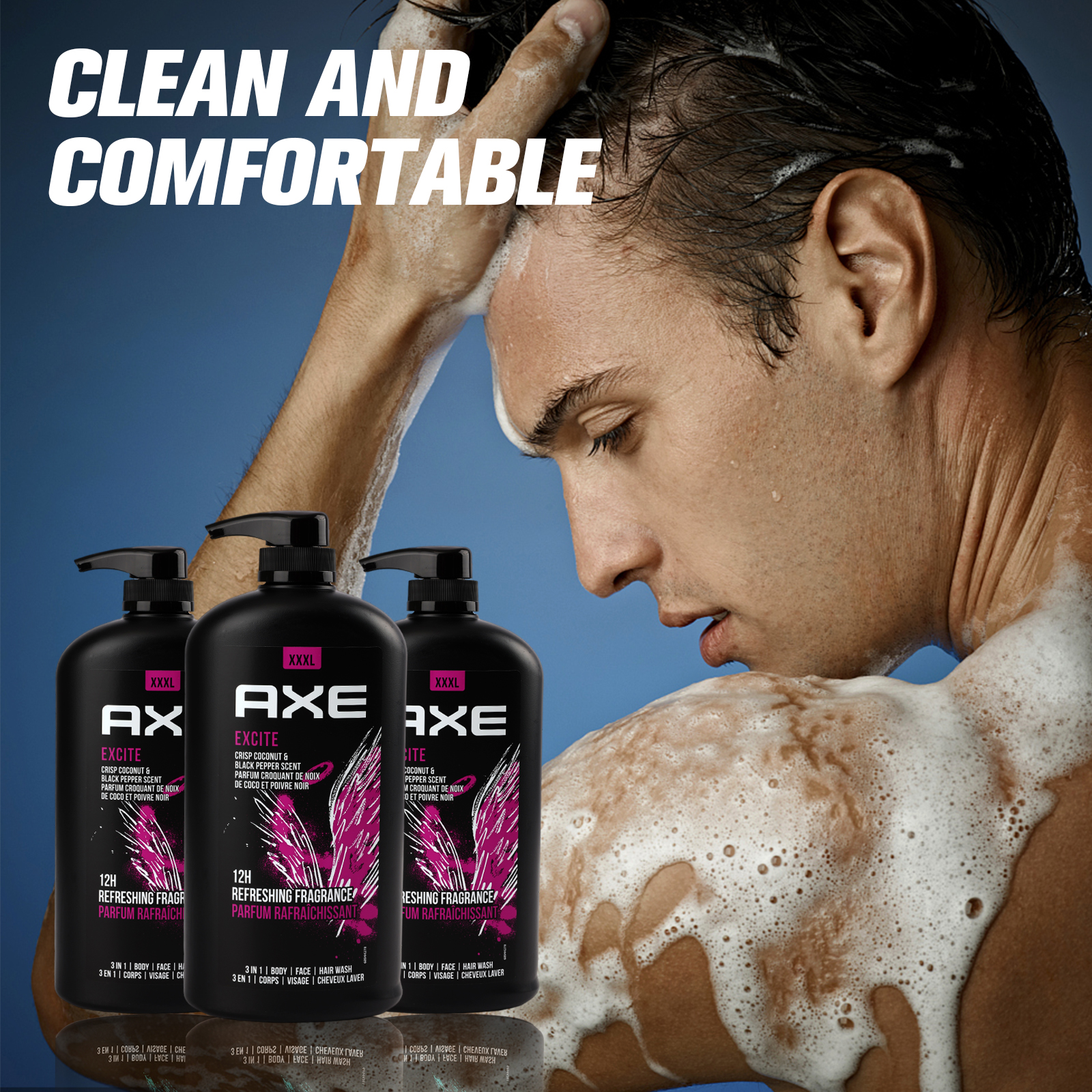 Add to your skin care regimen to wash away odor and smell refreshed with our AXE men's body wash