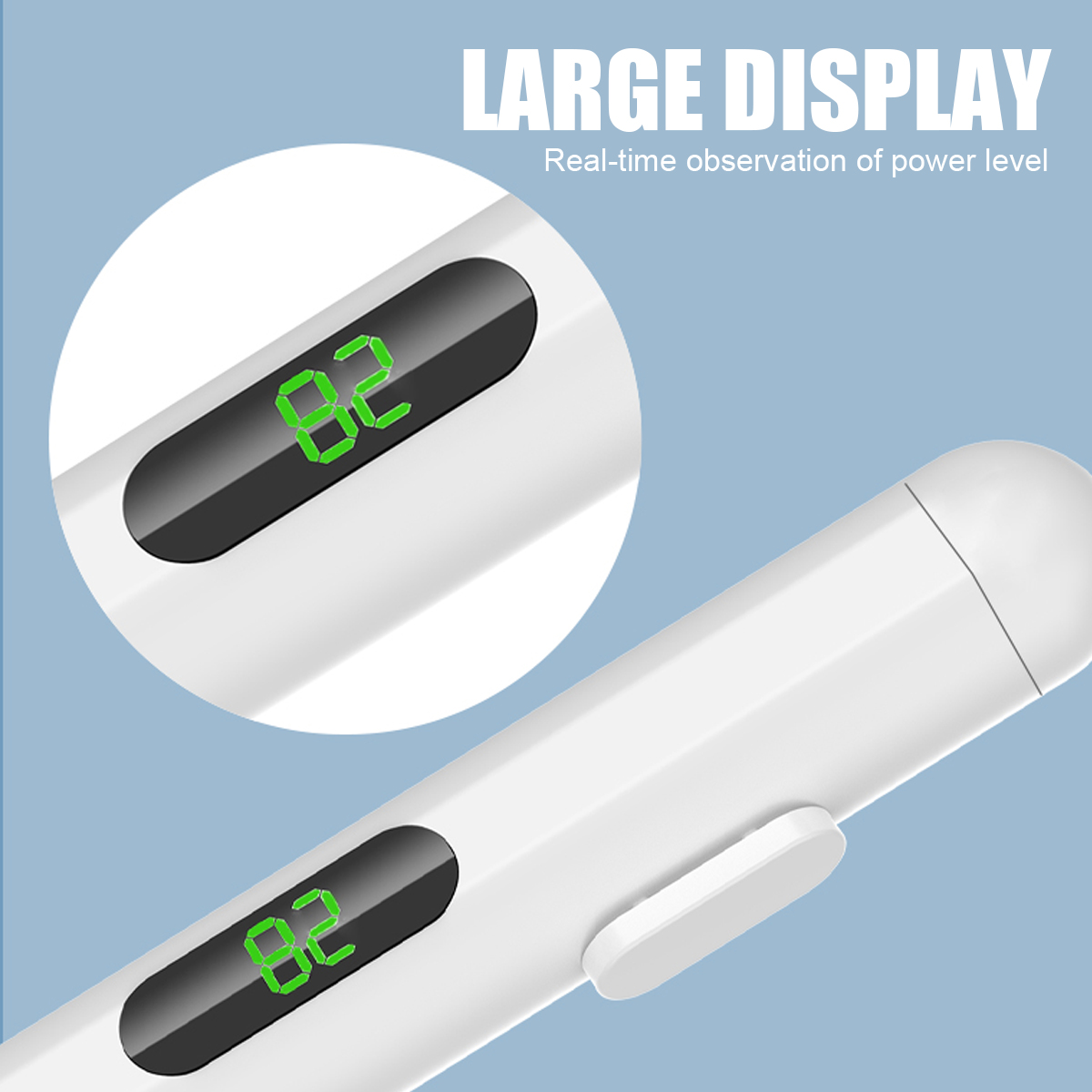 The stylus will enter the energy-saving mode after switching on and displaying the power level, displaying "---", and then clicking again will display the power level (energy-saving mode for normal use).