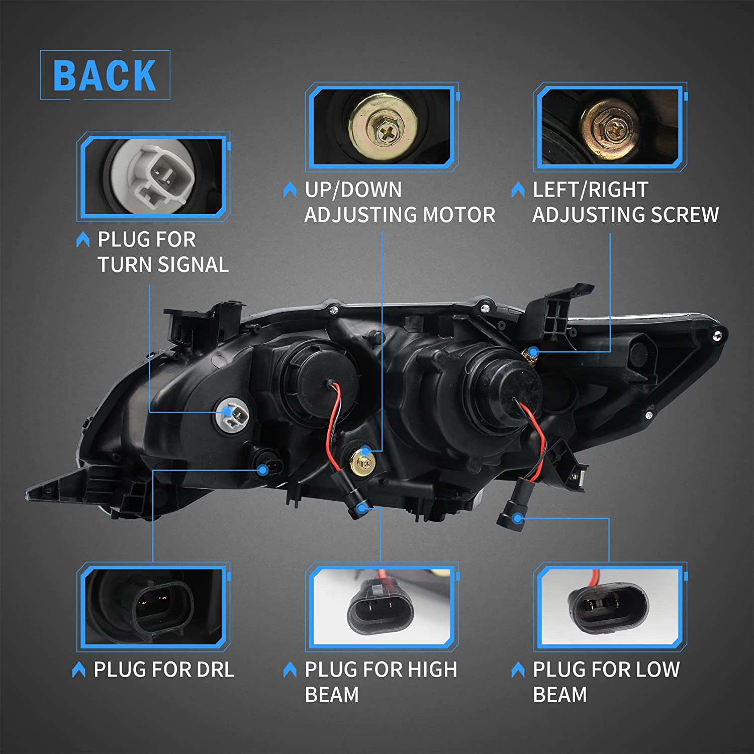 This item has the same connections and wires with the original headlights. It is easy to installing (Professional installation recommended).