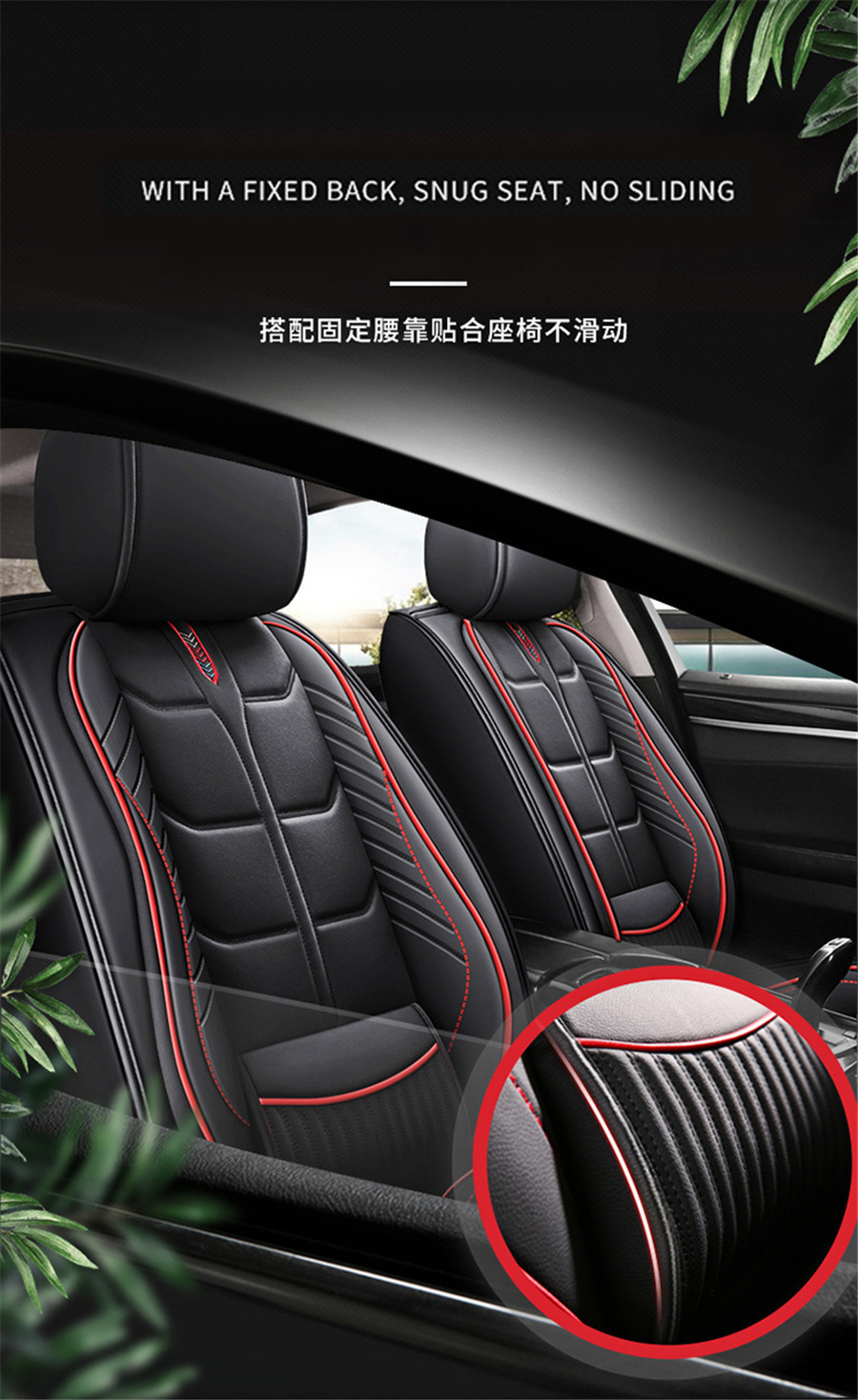 2.Large base in front row and whole surrounded design at side of front seat which has no shifting and slide protect the car seat well. Storage bag is designed for front seat which is practical.