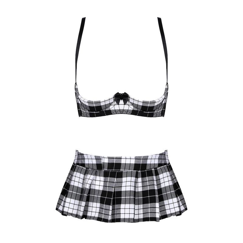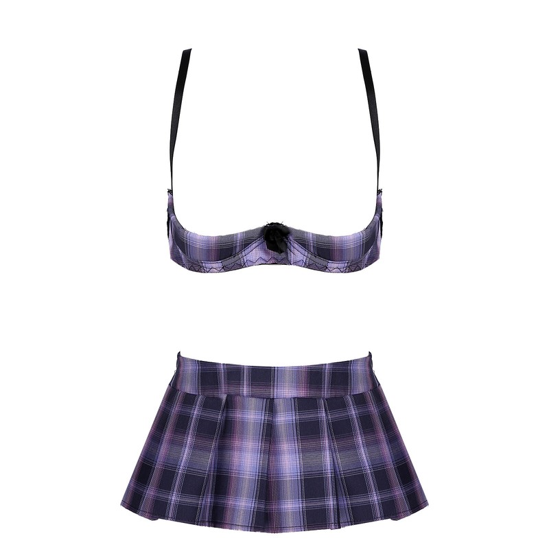 Plaid print, straps, open bras with underwire, mini pleated skirt, jk uniform lingerie, make you super charming.